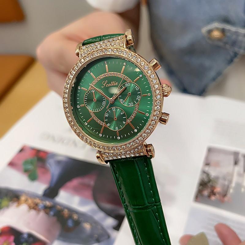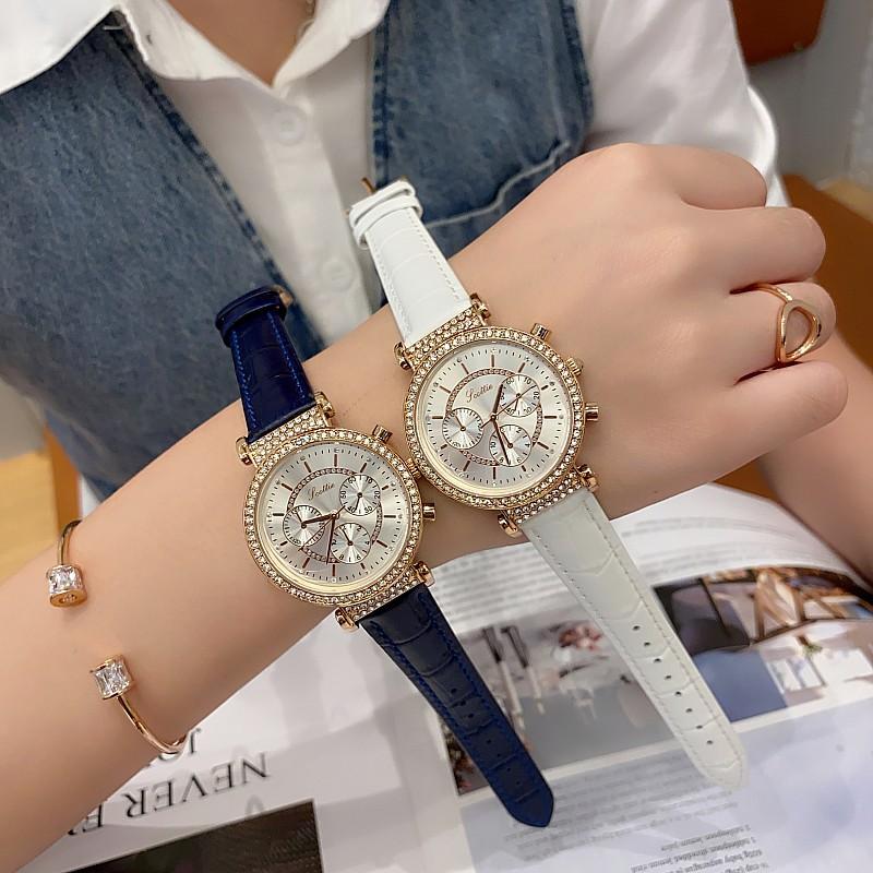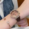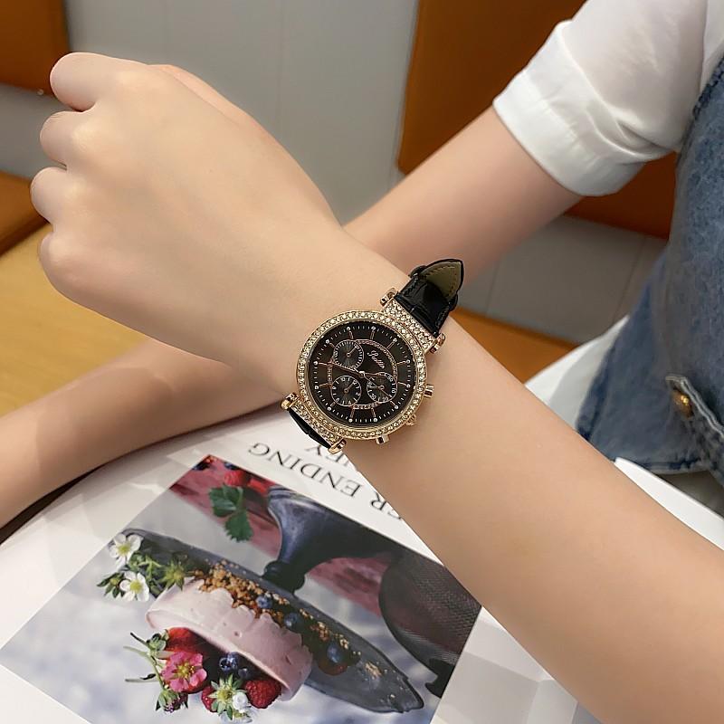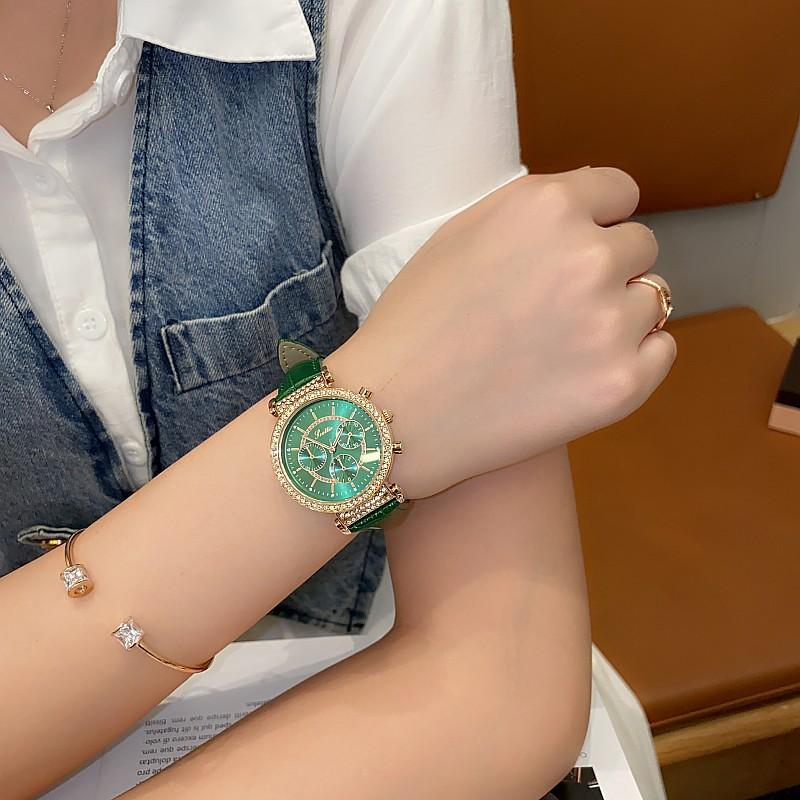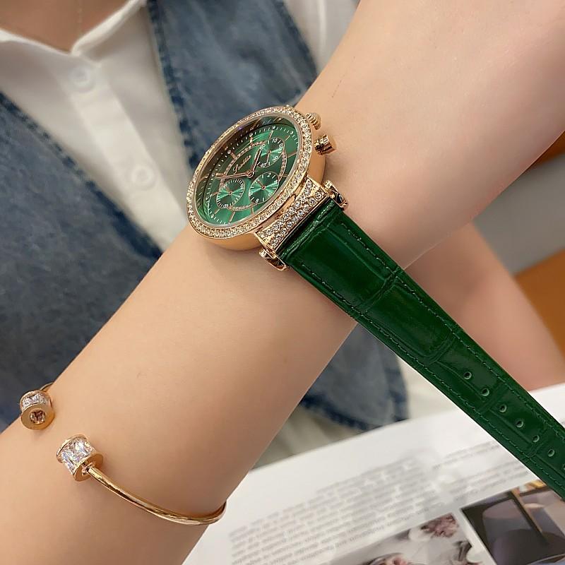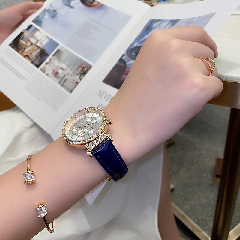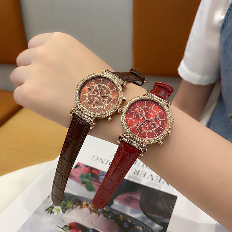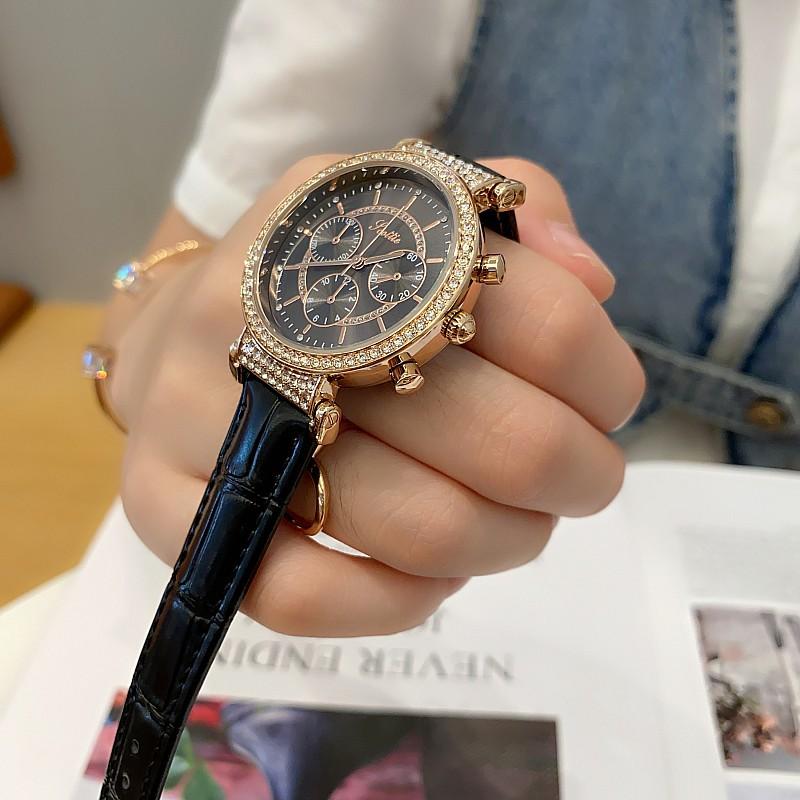 Reloj multifuncional Shigaodi con diamantes incrustados para mujer, reloj elegante y de moda con personalidad, reloj de cuero con estilo redondo para mujer.