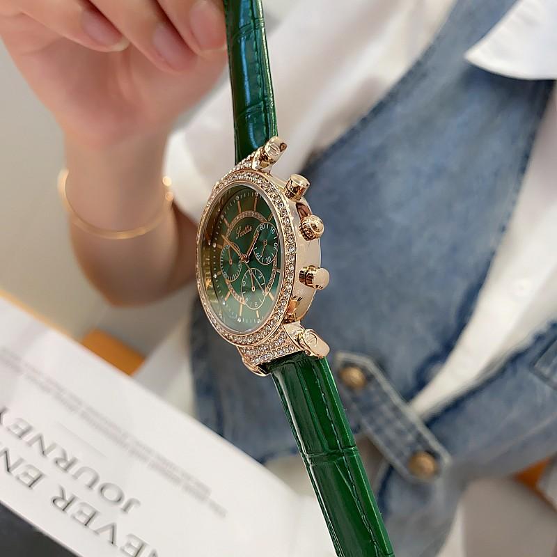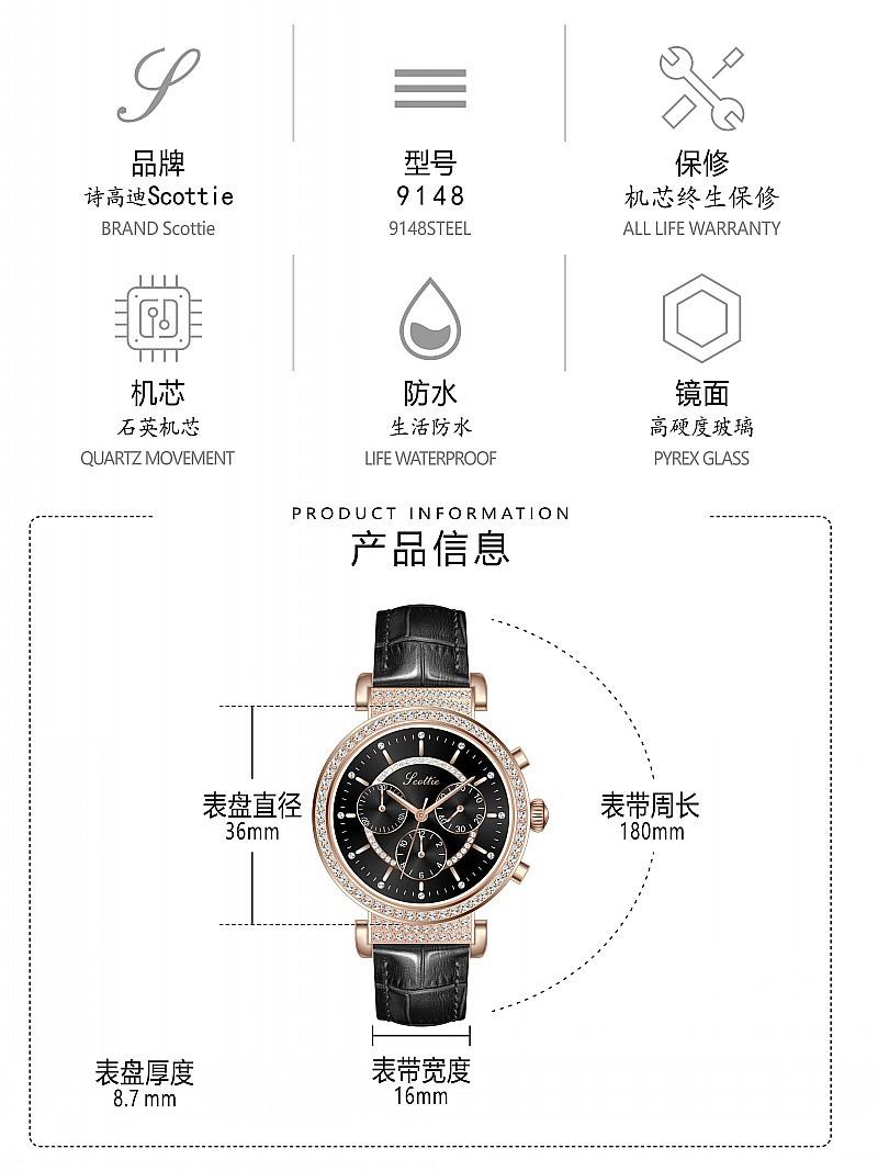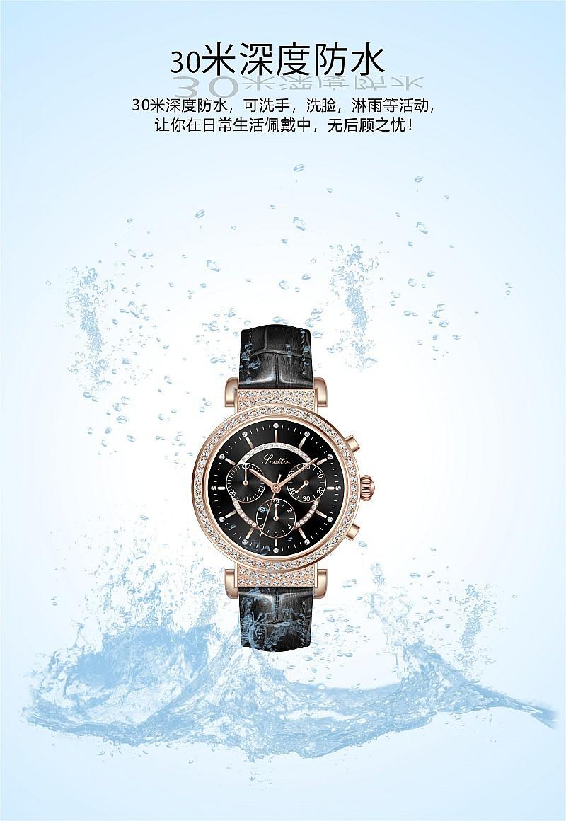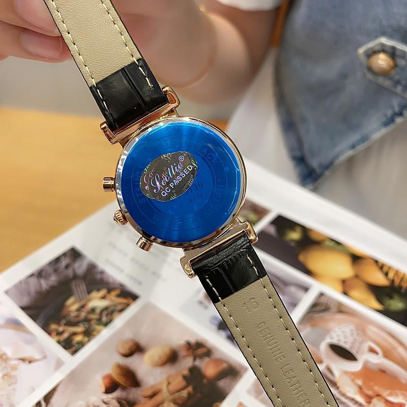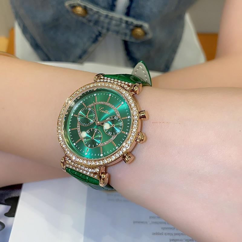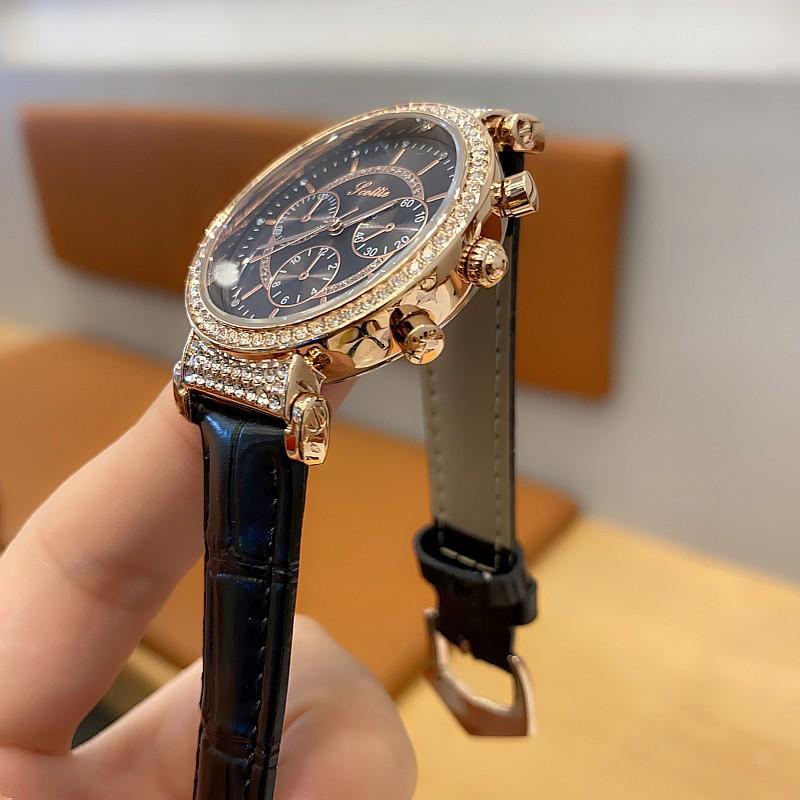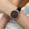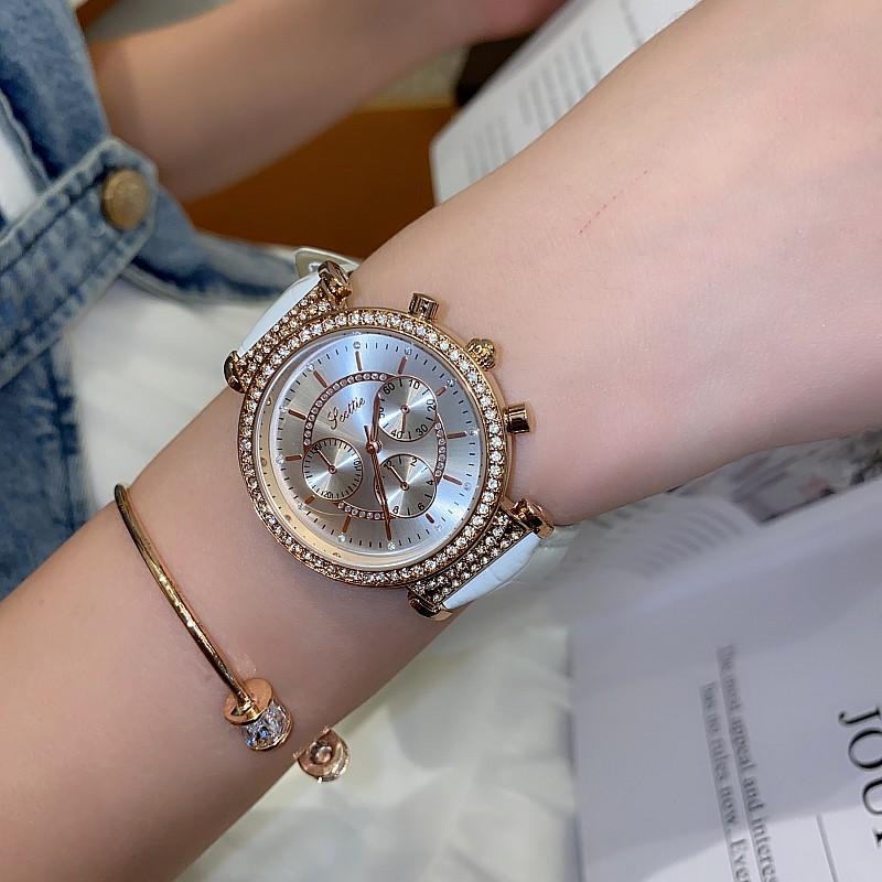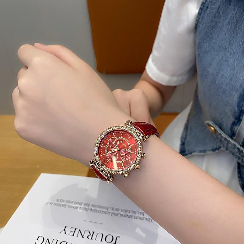 Reloj multifuncional Shigaodi con diamantes incrustados para mujer, reloj elegante y de moda con personalidad, reloj de cuero con estilo redondo para mujer.
