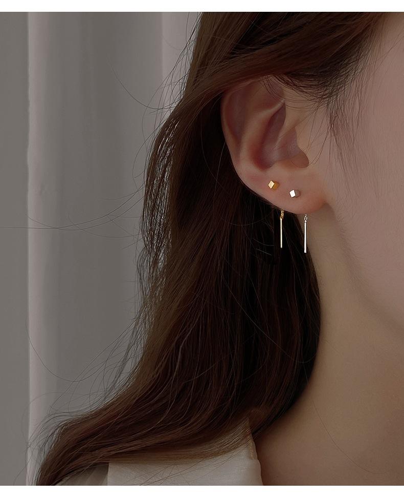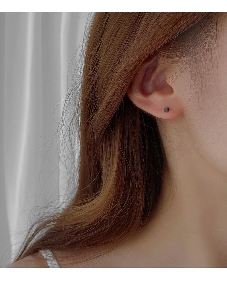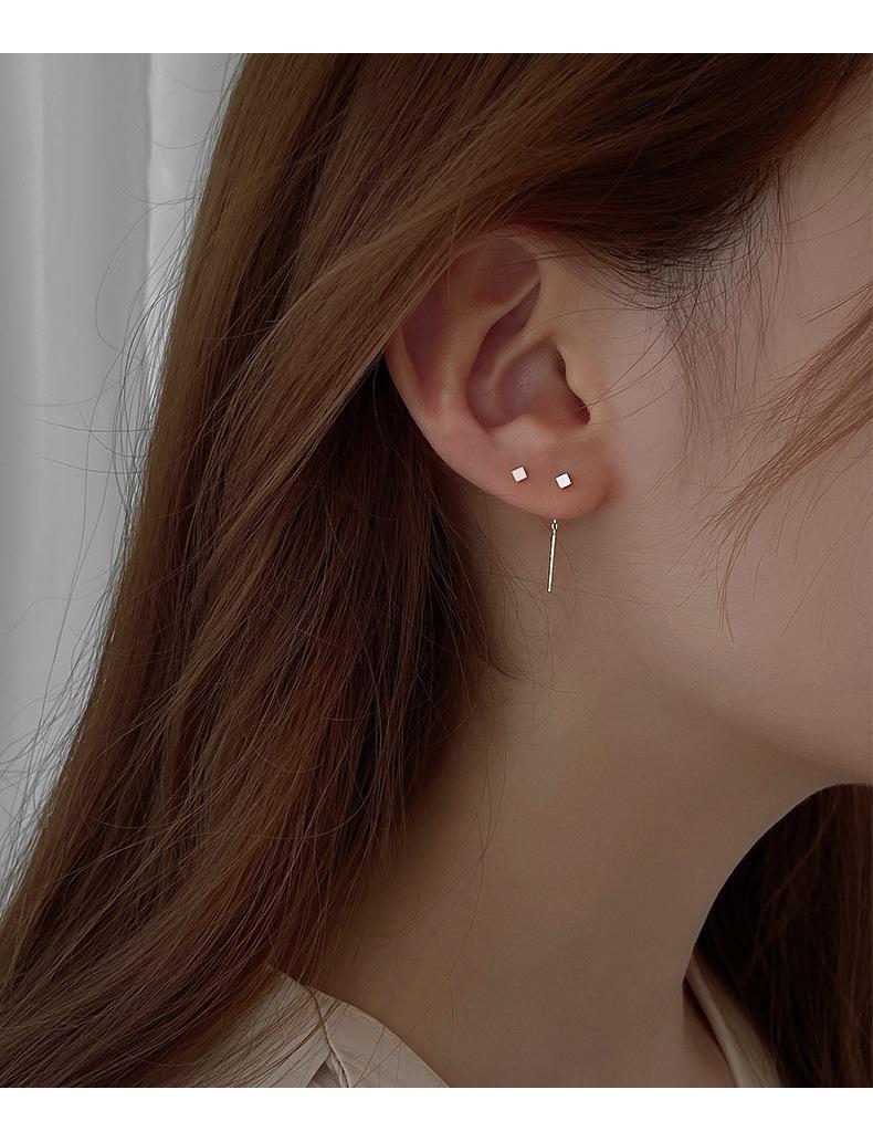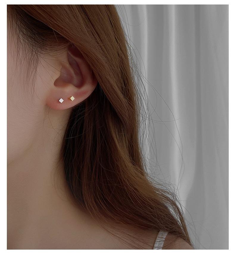 Square Stud Earrings-Silver, Square Stud Earrings-Gold, Square Stud Earrings-Black, Block Ear Line-Silver, Blo...