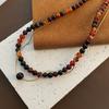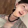 Cadena de cintura con cuentas de ágata negra de diseño de nicho, estilo retro, de alta calidad, ligera, de lujo, de doble capa, para clavícula femenina.