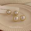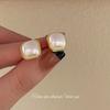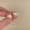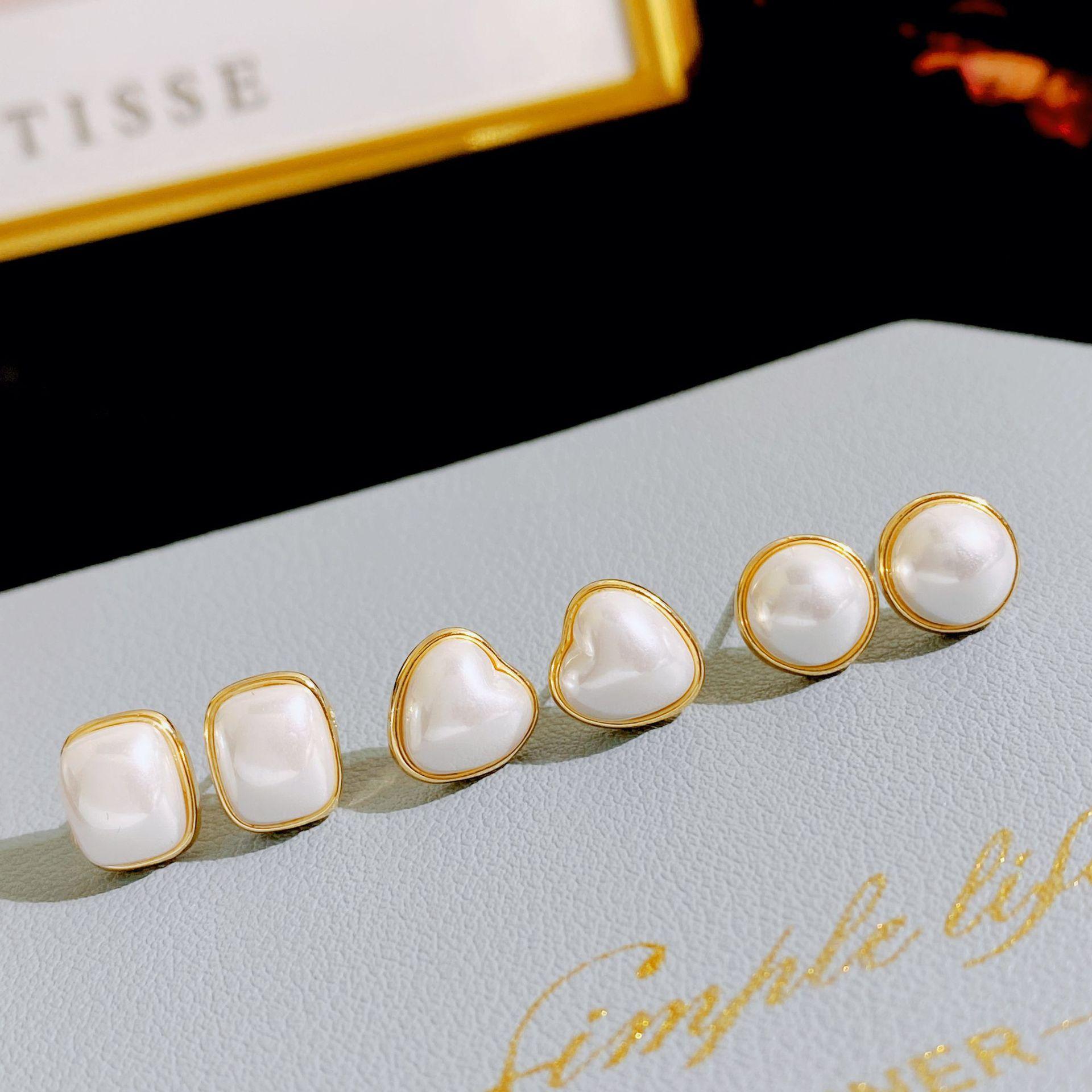 Pendientes de perla estilo coreano, frescos y modernos, con forma de corazón, redondos, cuadrados y geométricos, de plata a juego.