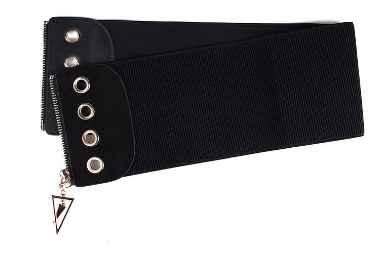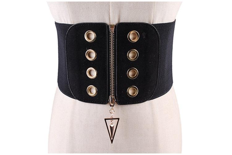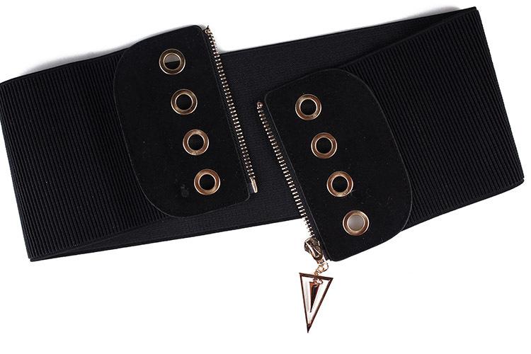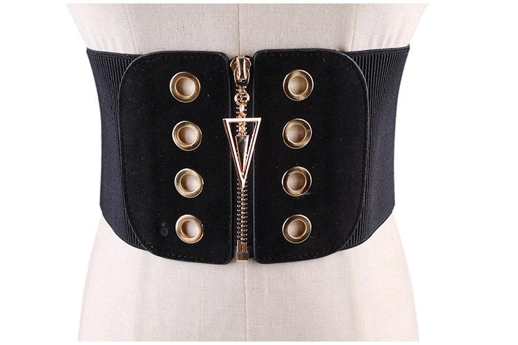 Venta al por mayor transfronteriza versión coreana de Joker hueco ojo de aire cremallera cintura elástica decorativo vestido camisero cinturón falda