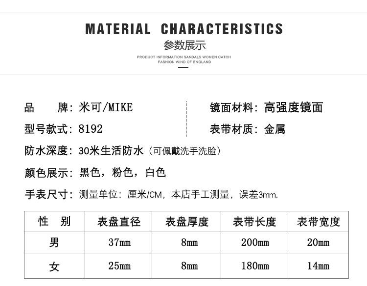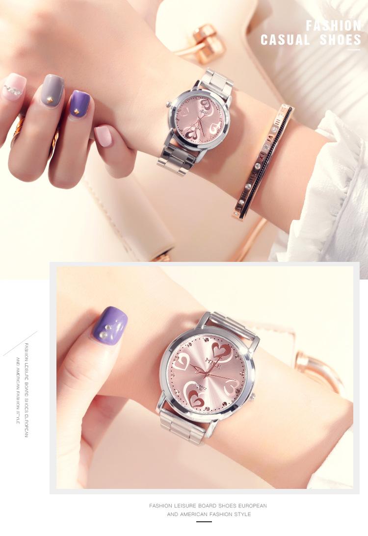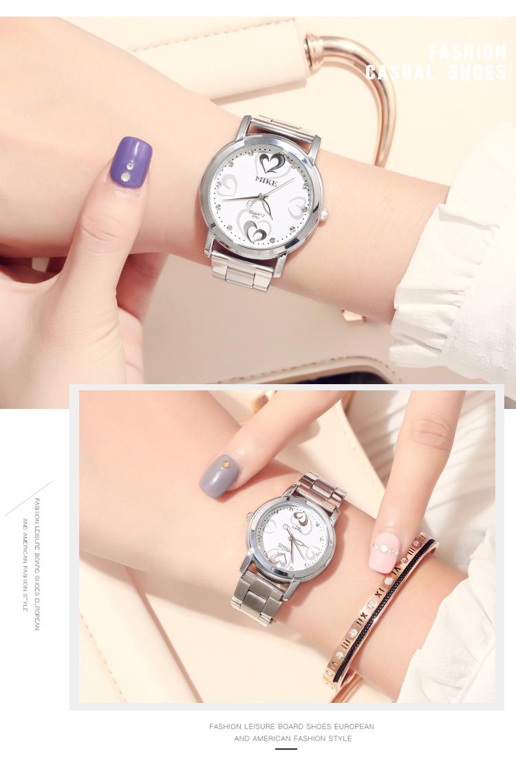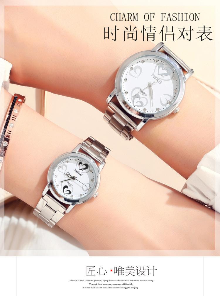 Reloj de pareja Mike Love con correa de acero, no mecánico, resistente al agua, de cuarzo, para estudiantes, venta al por mayor.