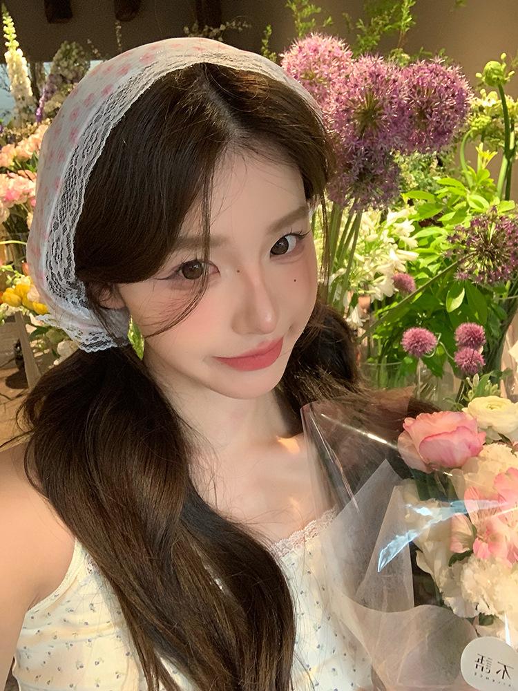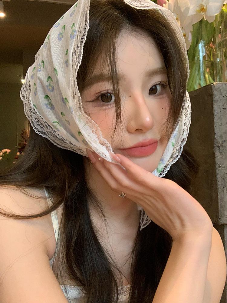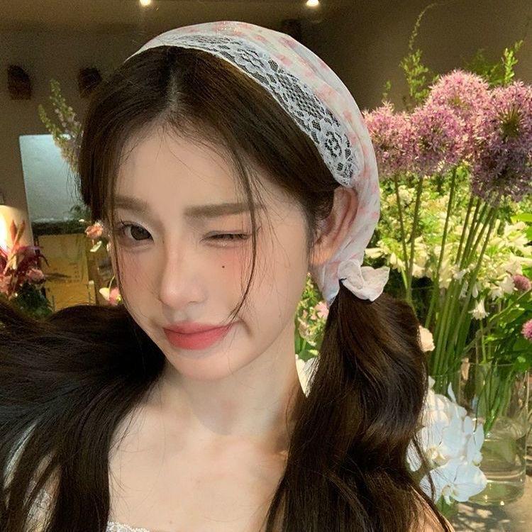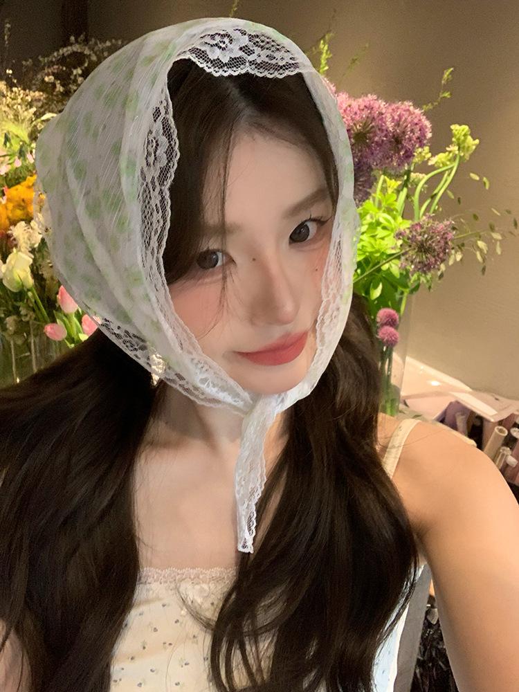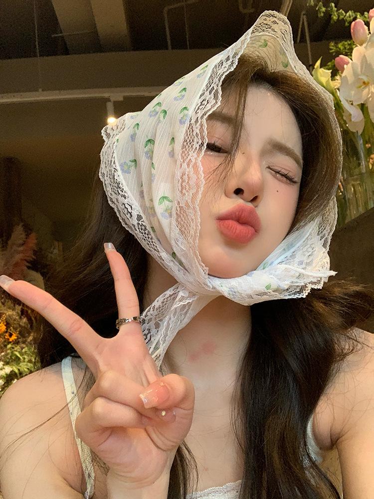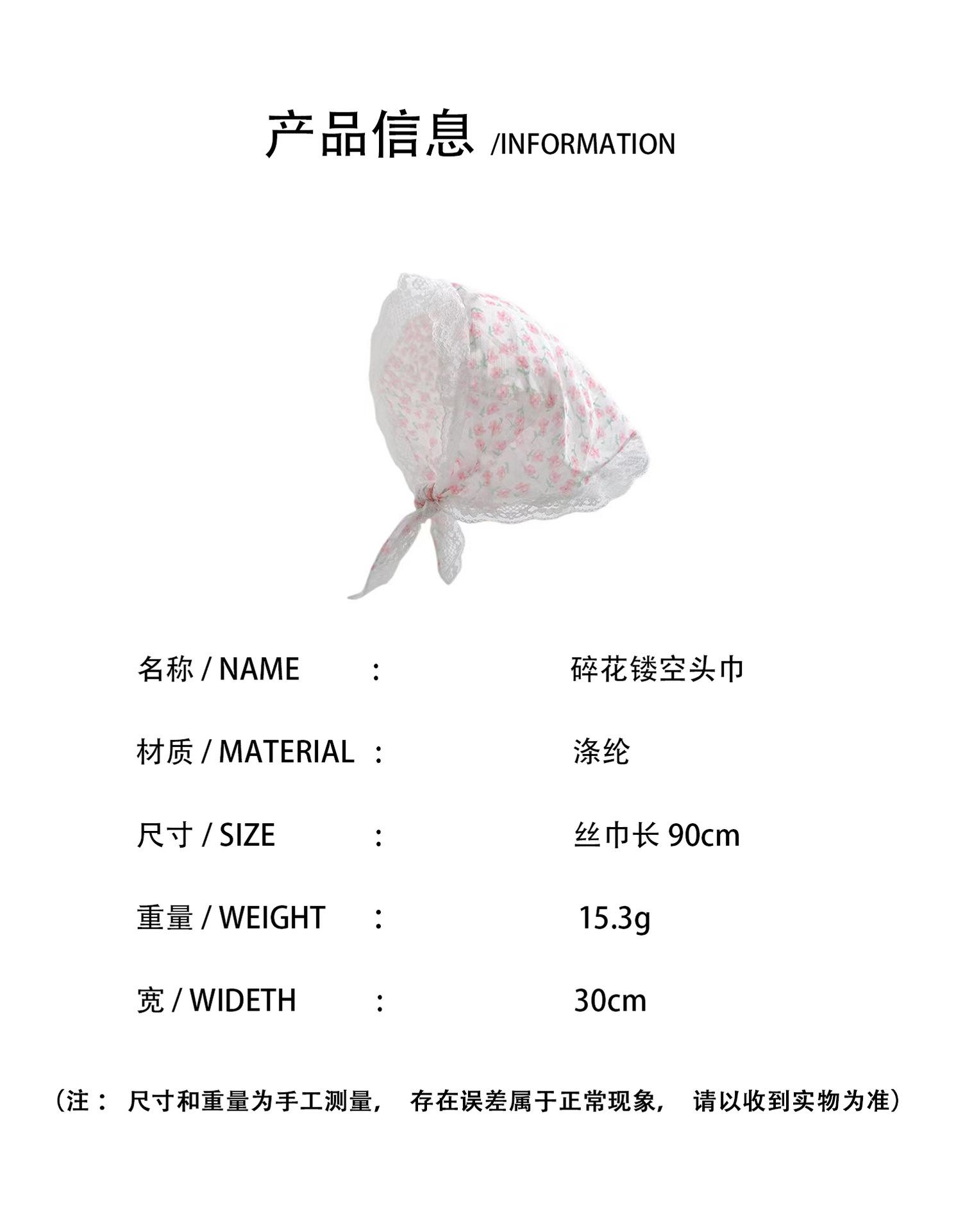 Pañuelo triangular de encaje floral estilo francés vintage para mujer, estilo pastoral Baotou de verano, para playa y playa.