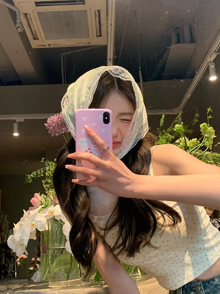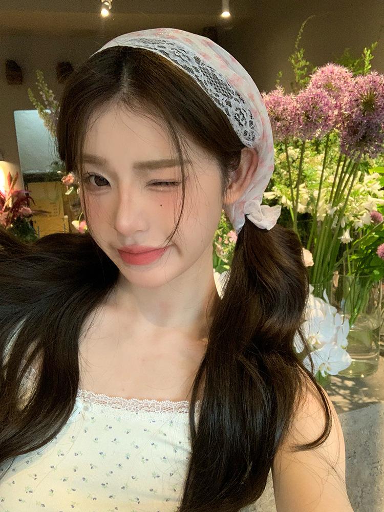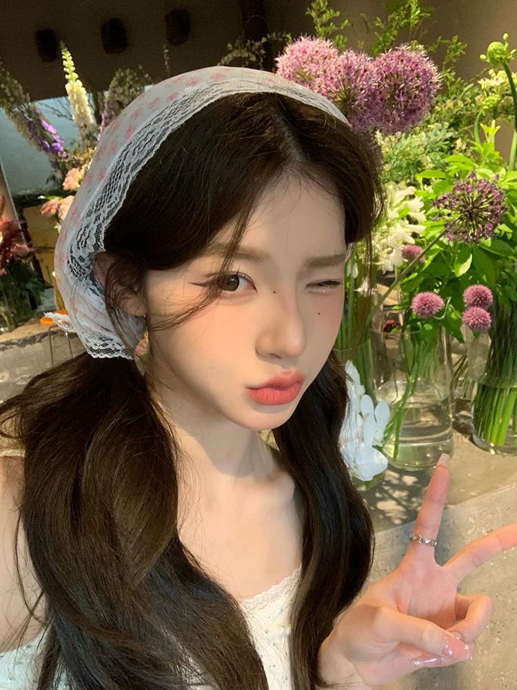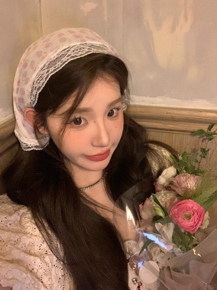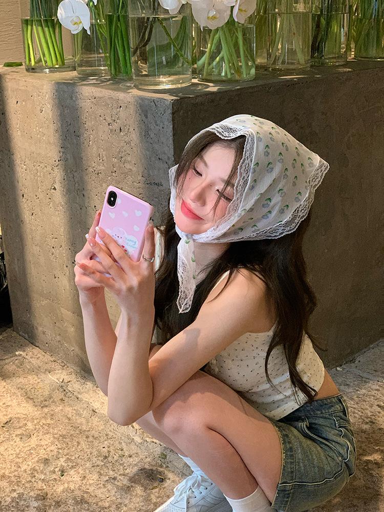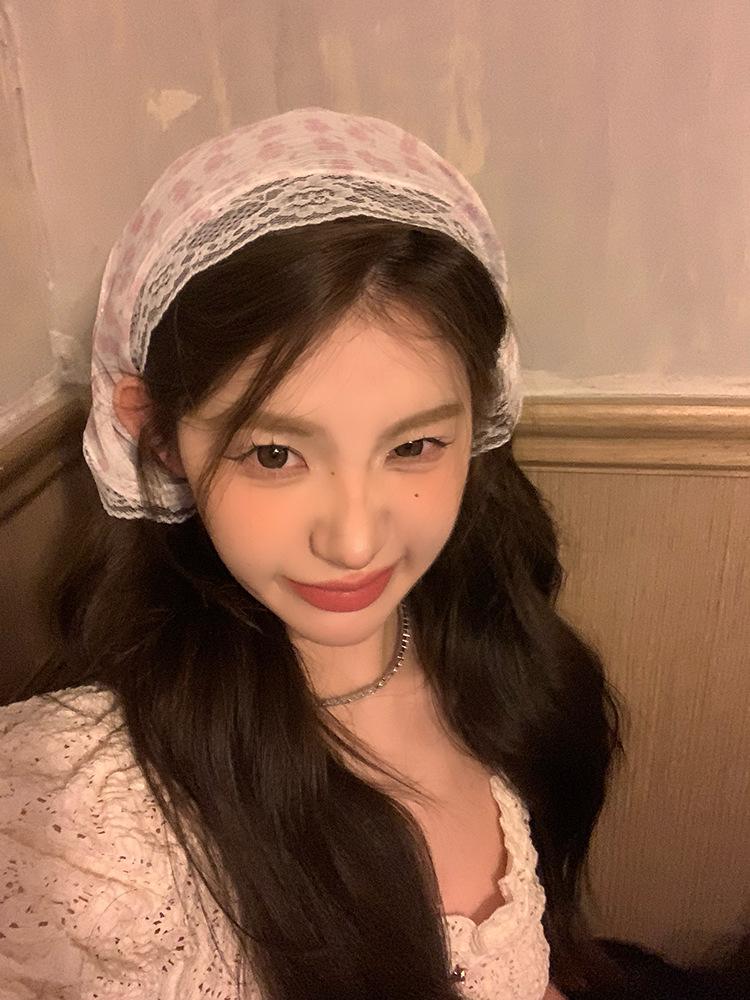 Pañuelo triangular de encaje floral estilo francés vintage para mujer, estilo pastoral Baotou de verano, para playa y playa.