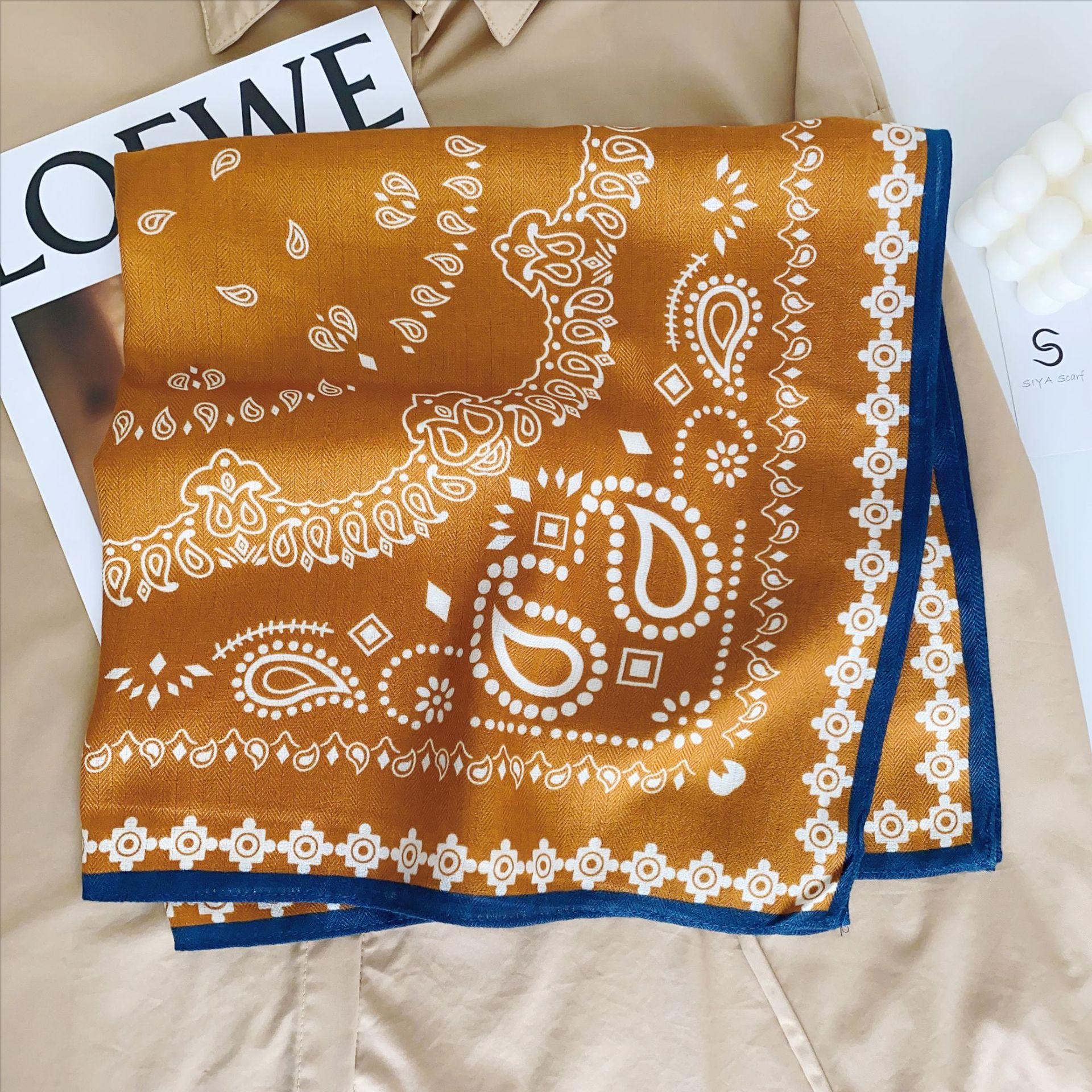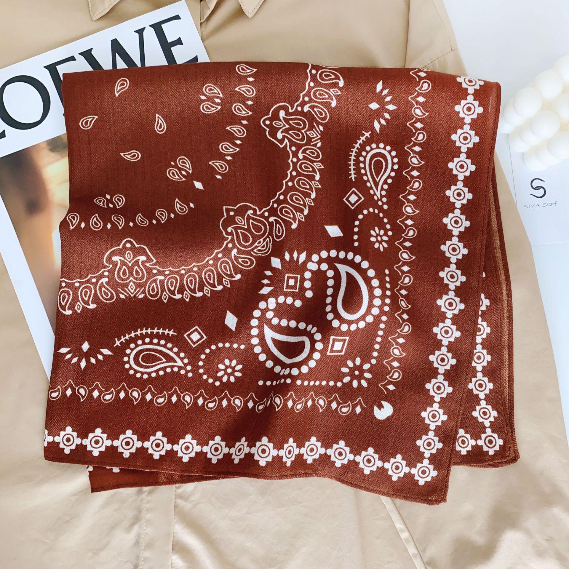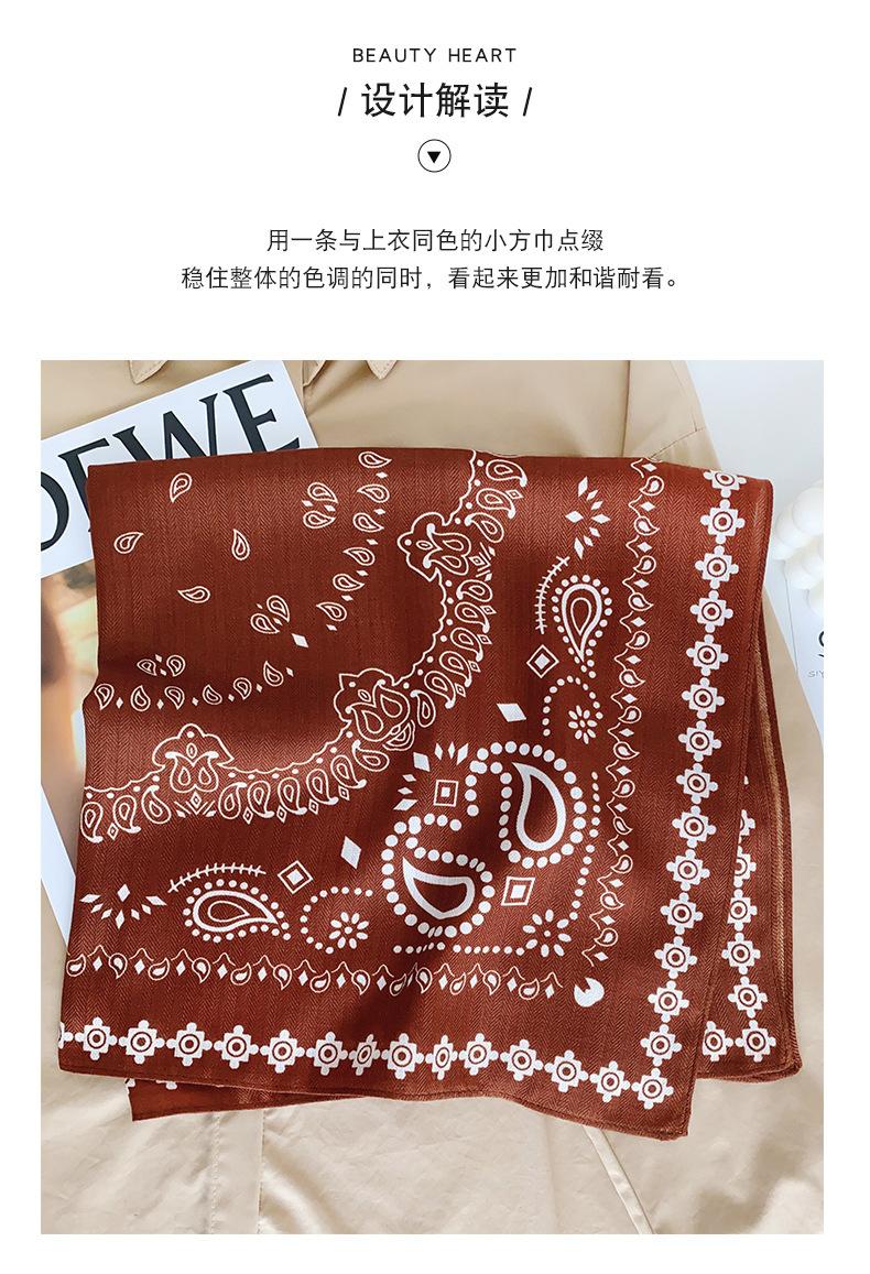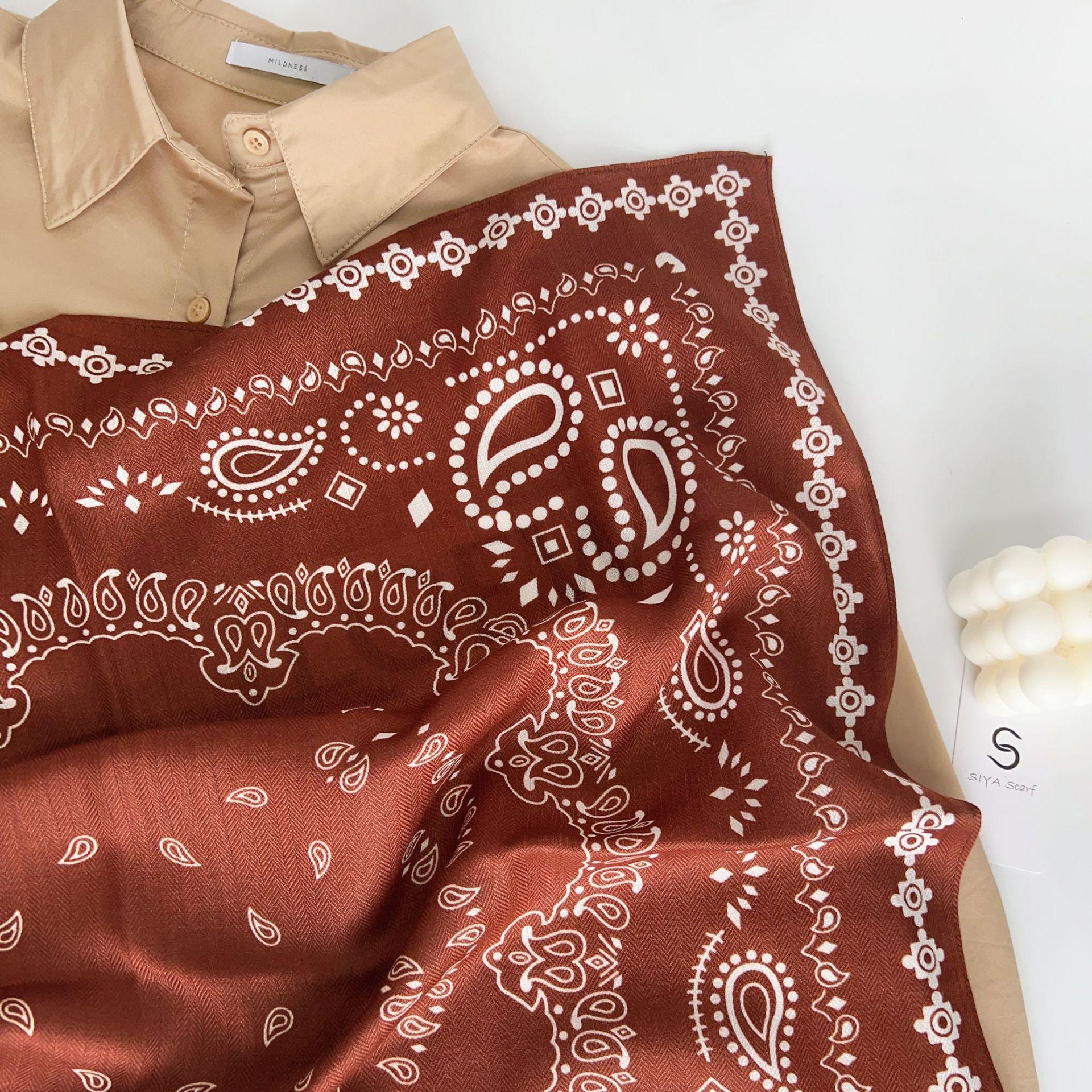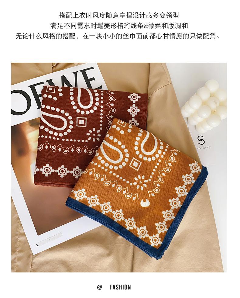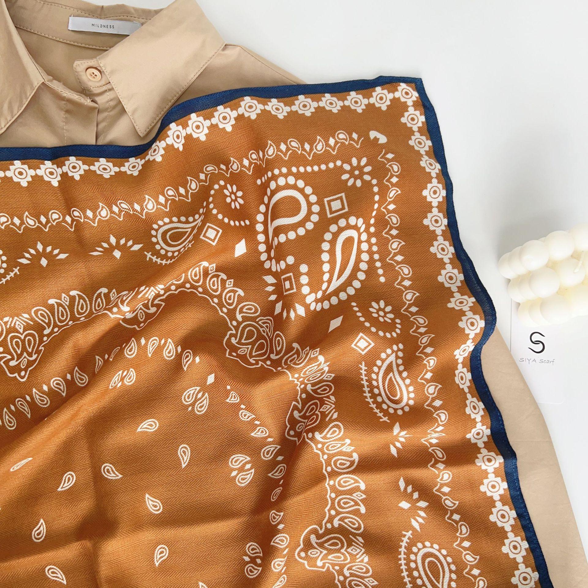Pañuelo cuadrado pequeño de 70 cm para mujer, nuevo pañuelo de seda para primavera y otoño, protección para el cuello, pañuelo pequeño de Corea del Sur, banda para el pelo retro de anacardo con combinación artística.