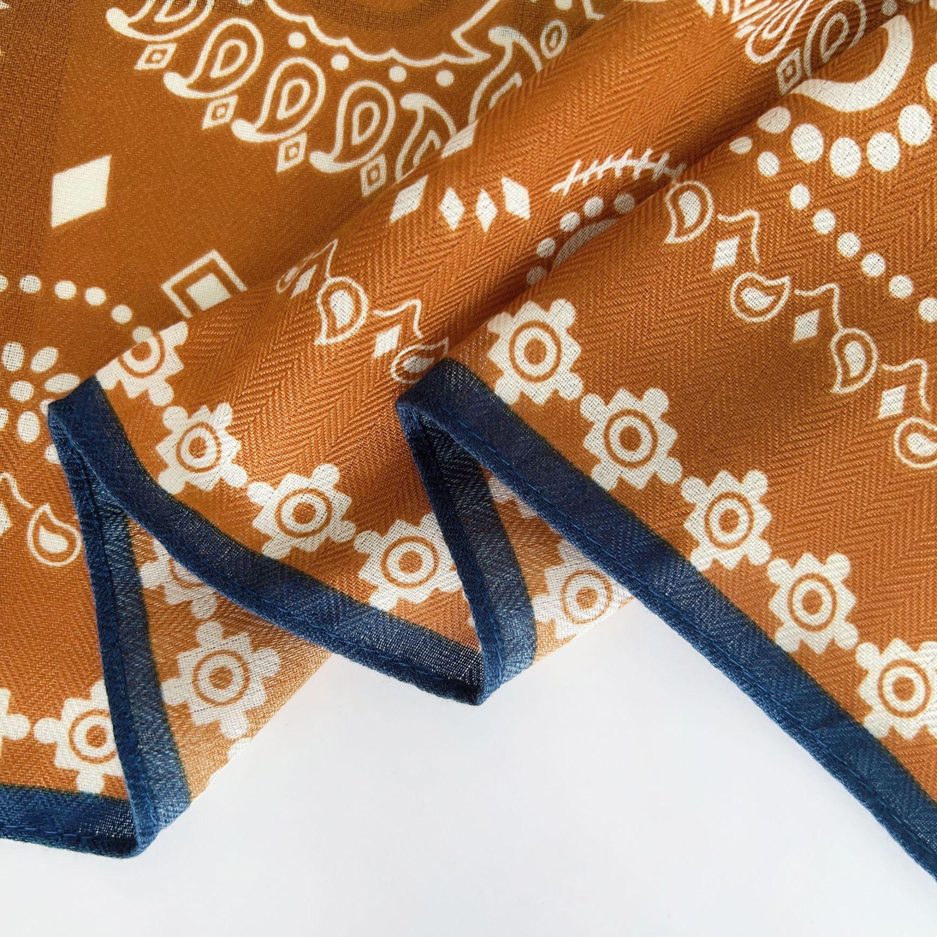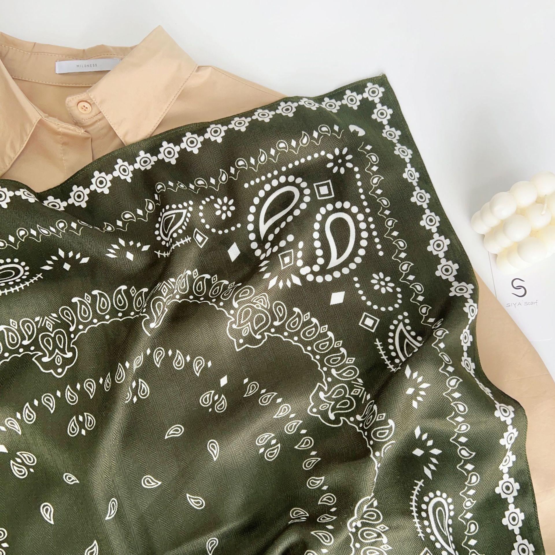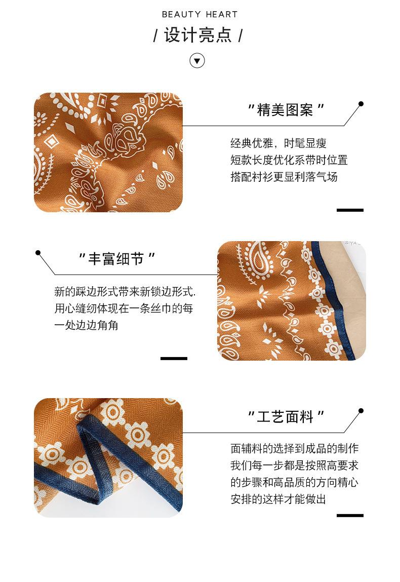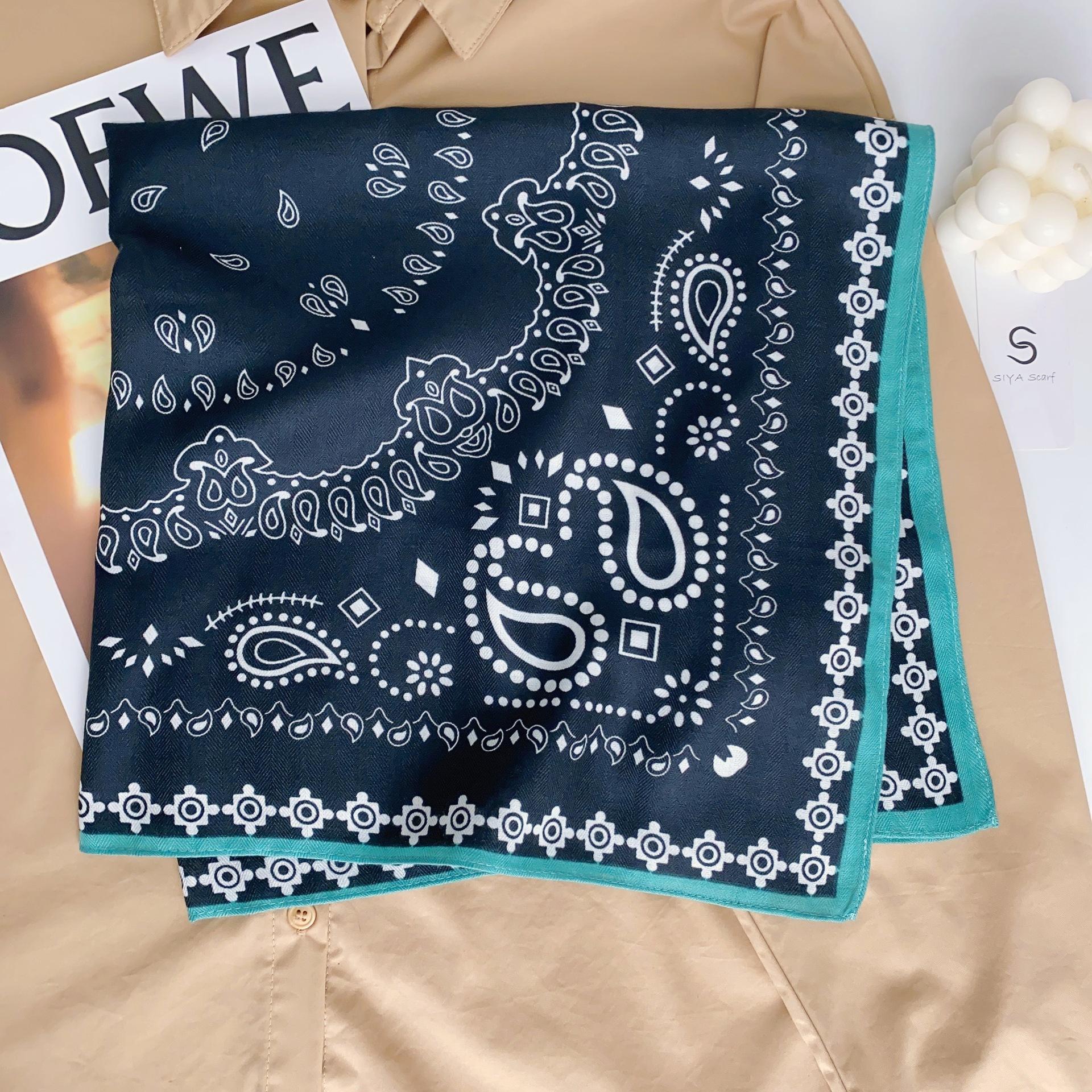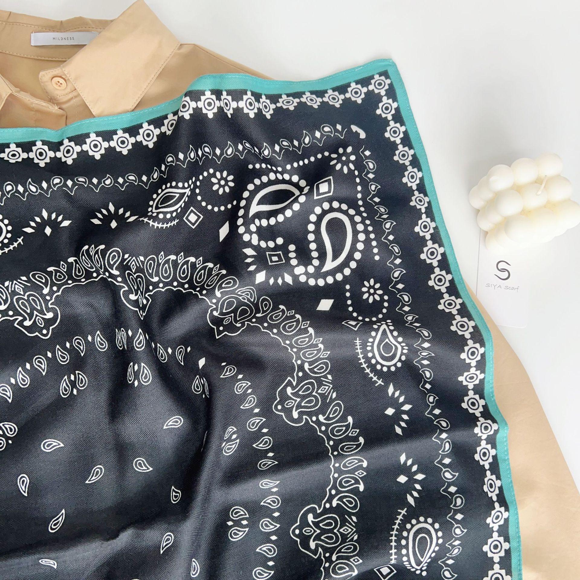 Pañuelo cuadrado pequeño de 70 cm para mujer, nuevo pañuelo de seda para primavera y otoño, protección para el cuello, pañuelo pequeño de Corea del Sur, banda para el pelo retro de anacardo con combinación artística.