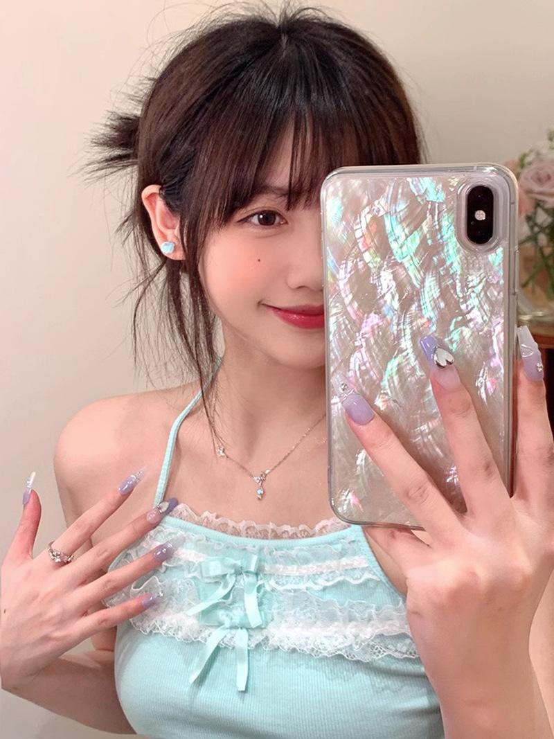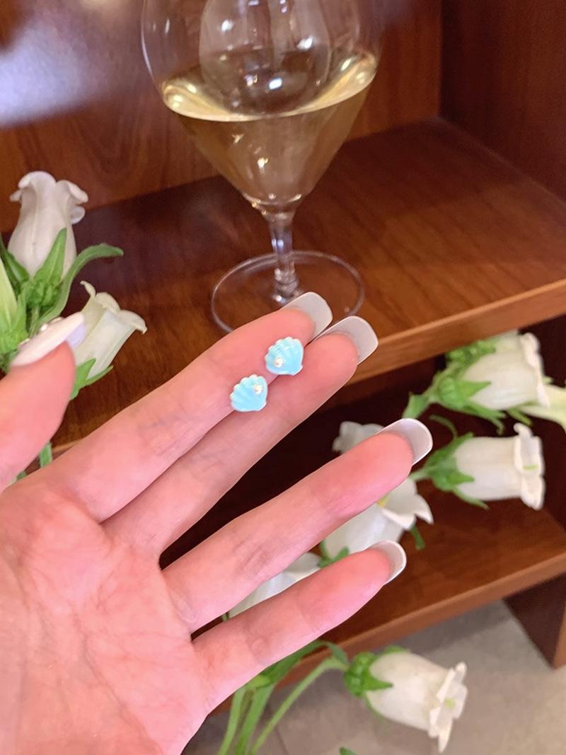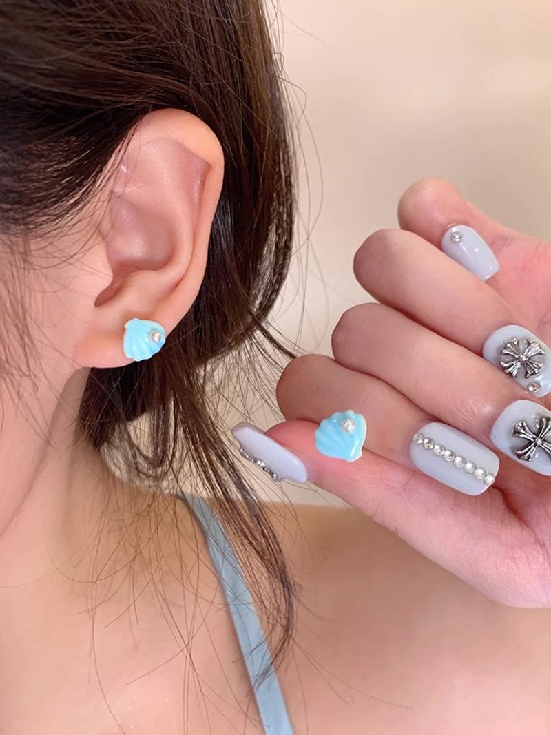 Pendientes de concha azul para mujer, sencillos, veraniegos, bonitos, con dopamina costera, temperamento, estilo coreano, pendientes de celebridades de Internet.