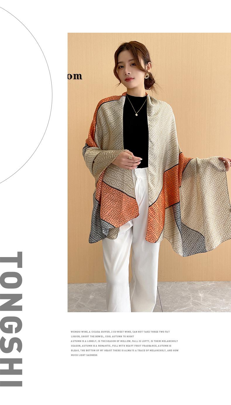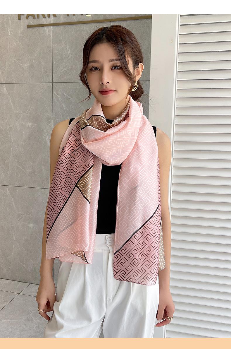 Nueva bufanda larga estampada de estilo coreano para mujer, bufanda larga de seda infrarroja de red, bufanda decorativa, chal personalizado al por mayor