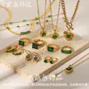 Collar, pendientes, pulsera, anillo, temperamento, serie de circonitas verdes de estilo retro de moda europea y americana, joyería de acero inoxidable para damas