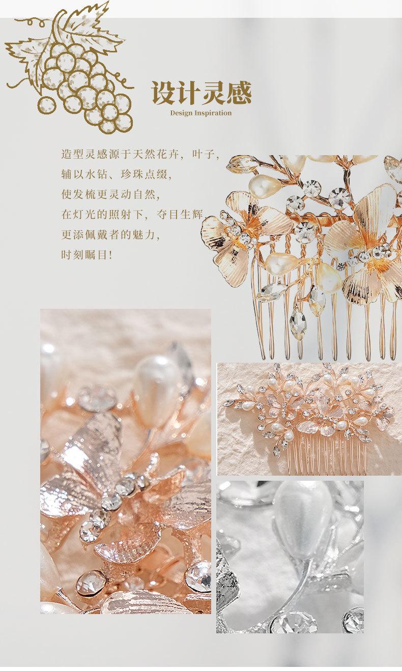 Accesorios europeos y americanos, peine de rama retro, tocado de lujo ligero de diamante simple, fotografía de novia, peine clásico para el cabello