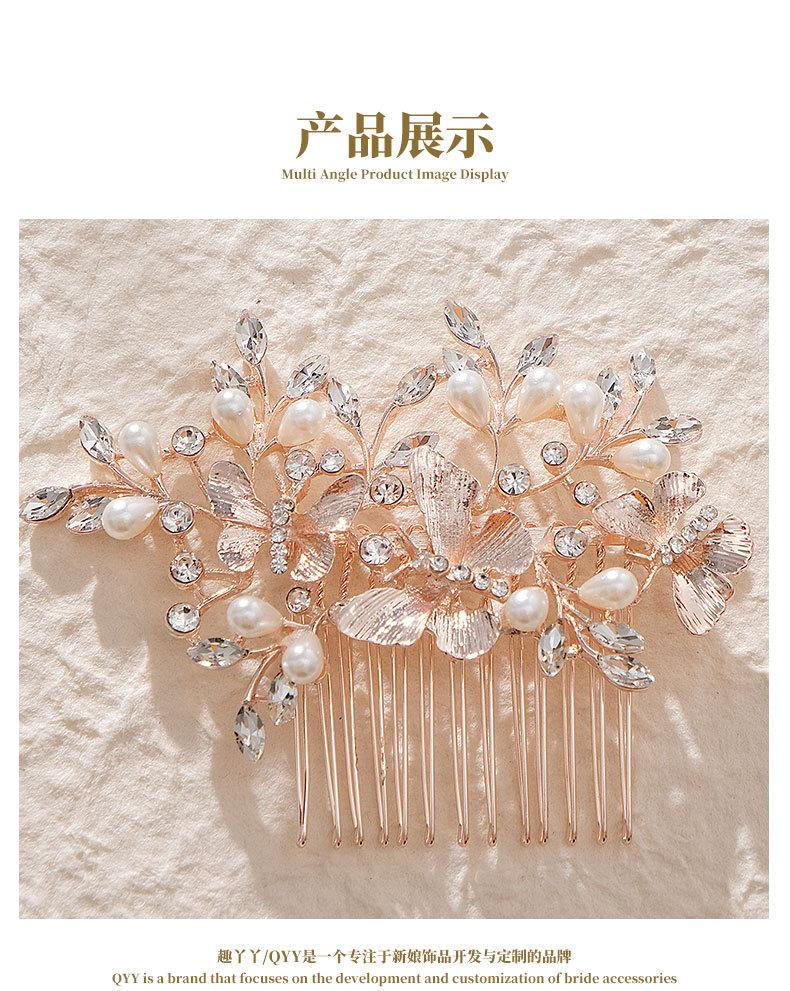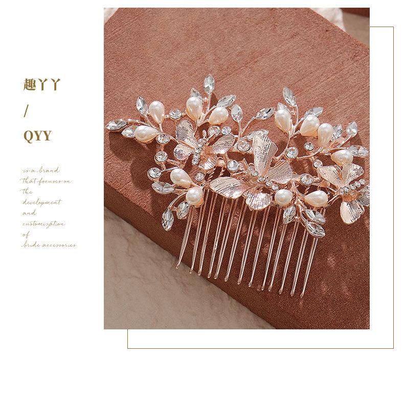 Venta caliente transfronteriza, peineta de aleación con diamantes de imitación, tocado nupcial de perlas de alta gama, accesorios para el cabello para vestido de foto de lujo ligero de moda