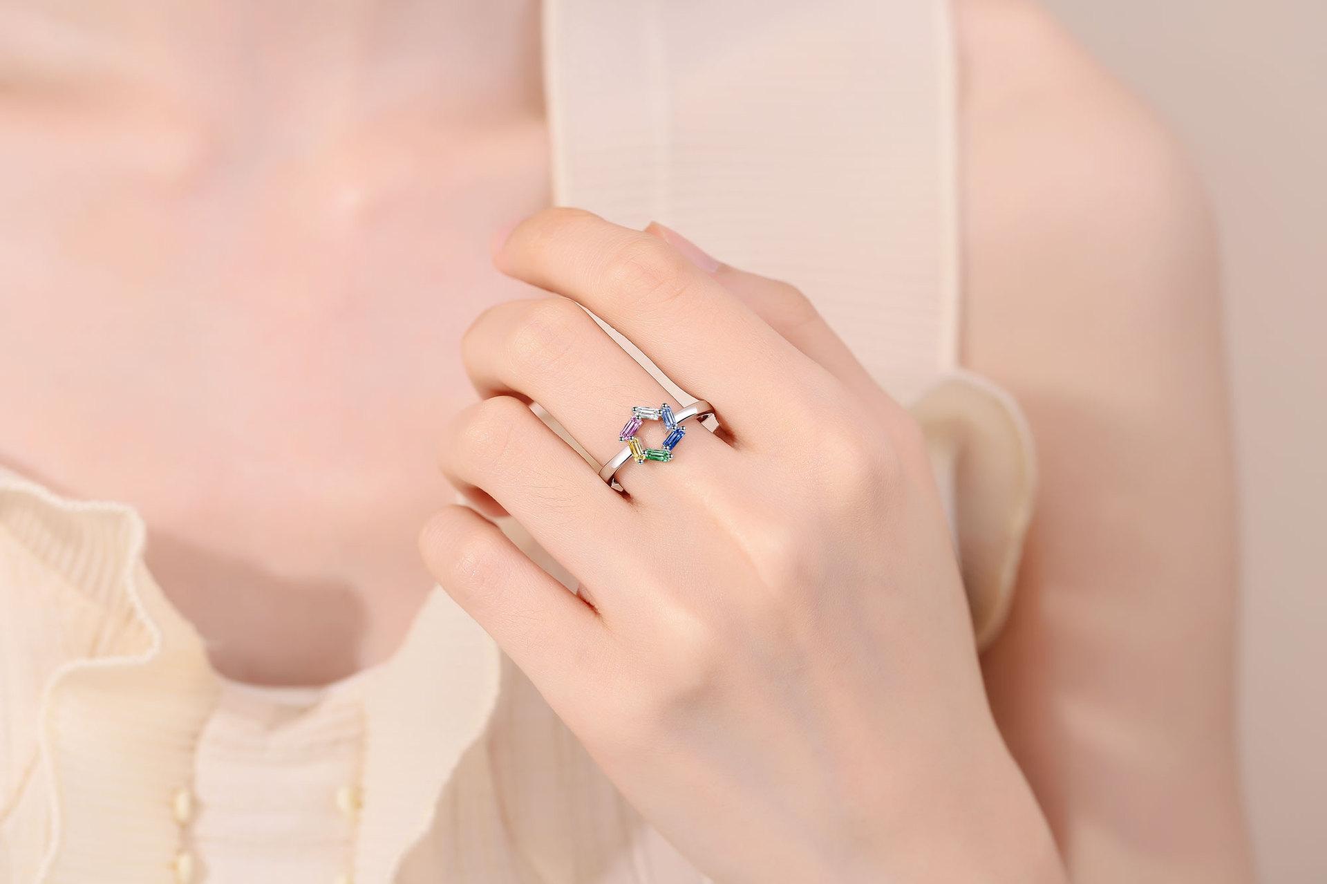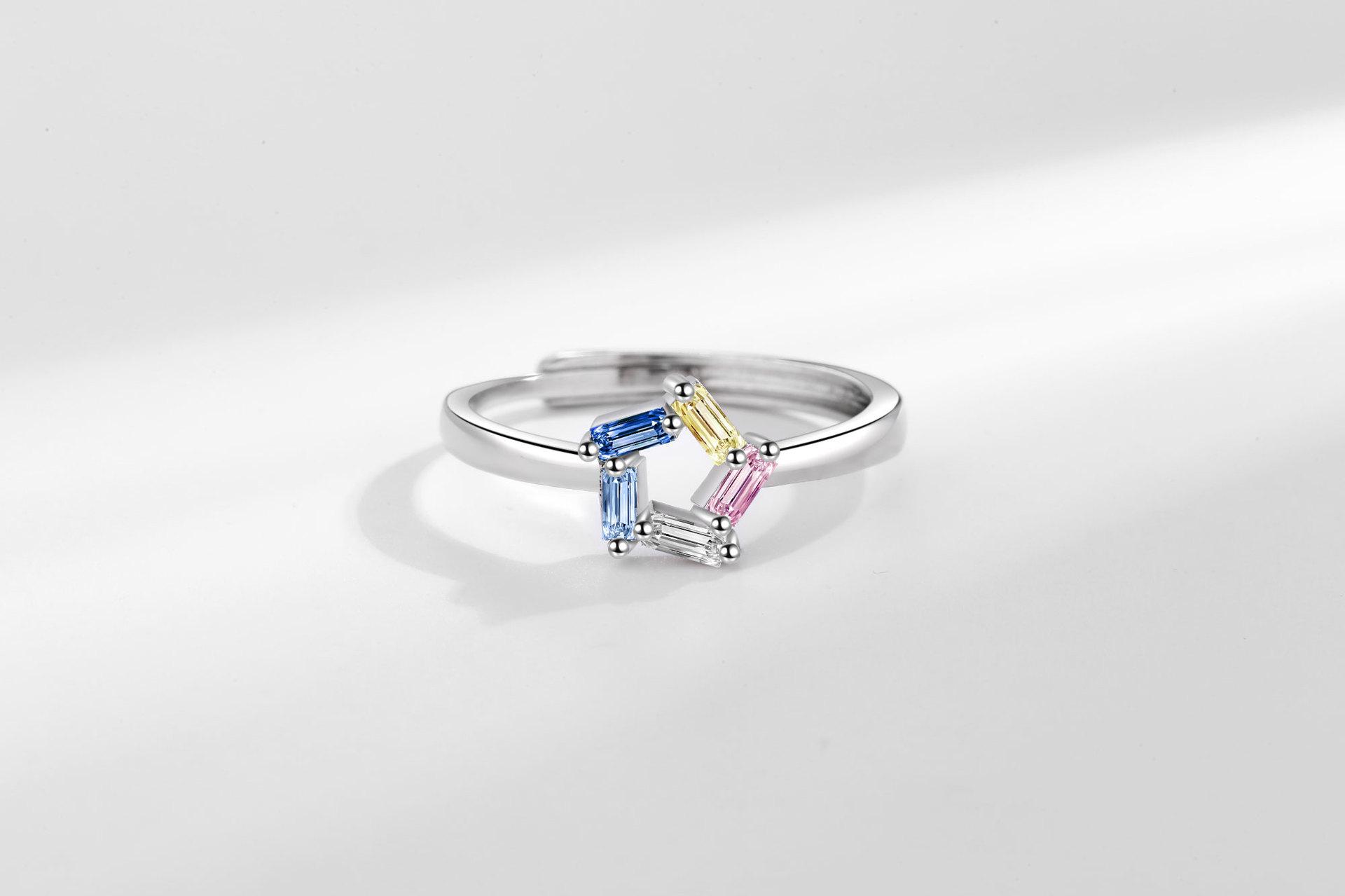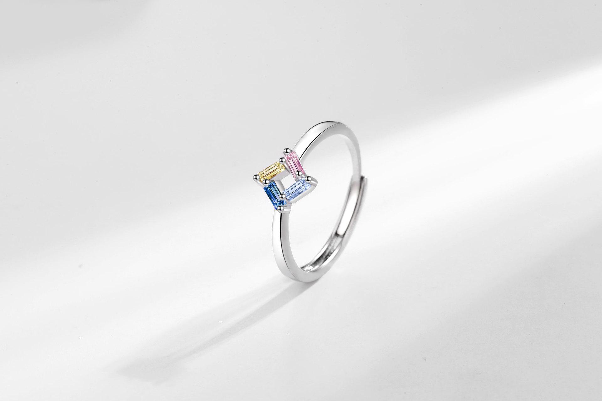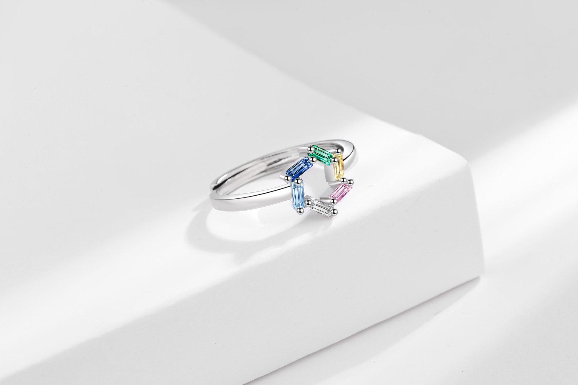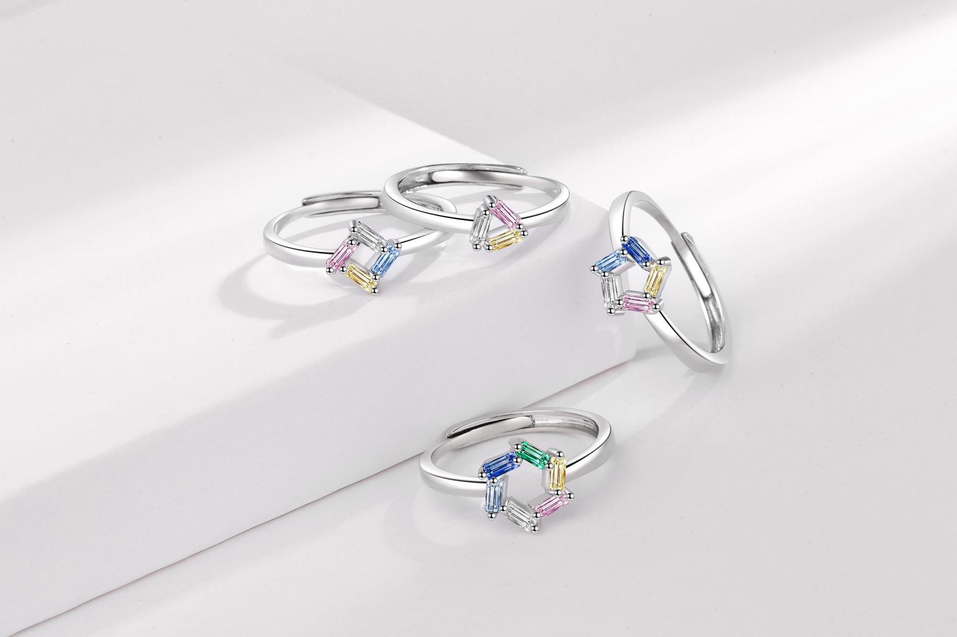 Anillo de circonita de color nuevo y atractivo transfronterizo para mujer, moderno, sencillo, estilo europeo y americano, elegante, combinable y ajustable.