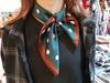 Bufanda de estilo chic para mujer, bufanda retro de invierno con puntos ondulados, banda para el pelo, bufanda cuadrada de seda con diseño artístico retro coreano para mujer