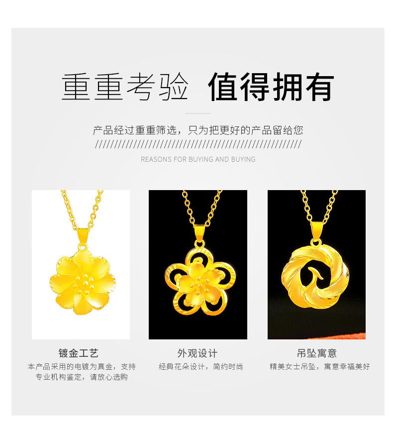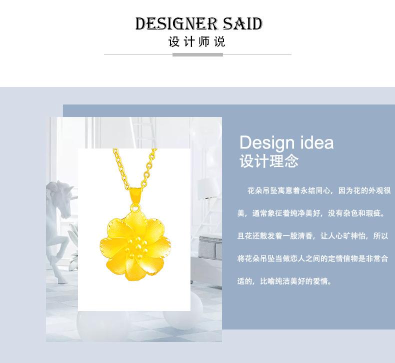 Colgante de flor de moda con diseño de arena de oro de Vietnam para mujer, colgante de latón chapado en oro de 24 quilates, collar de oro de imitación, fabricantes al por mayor