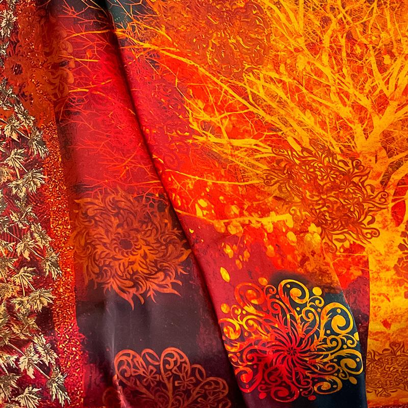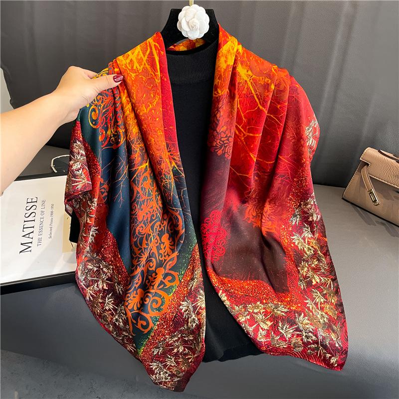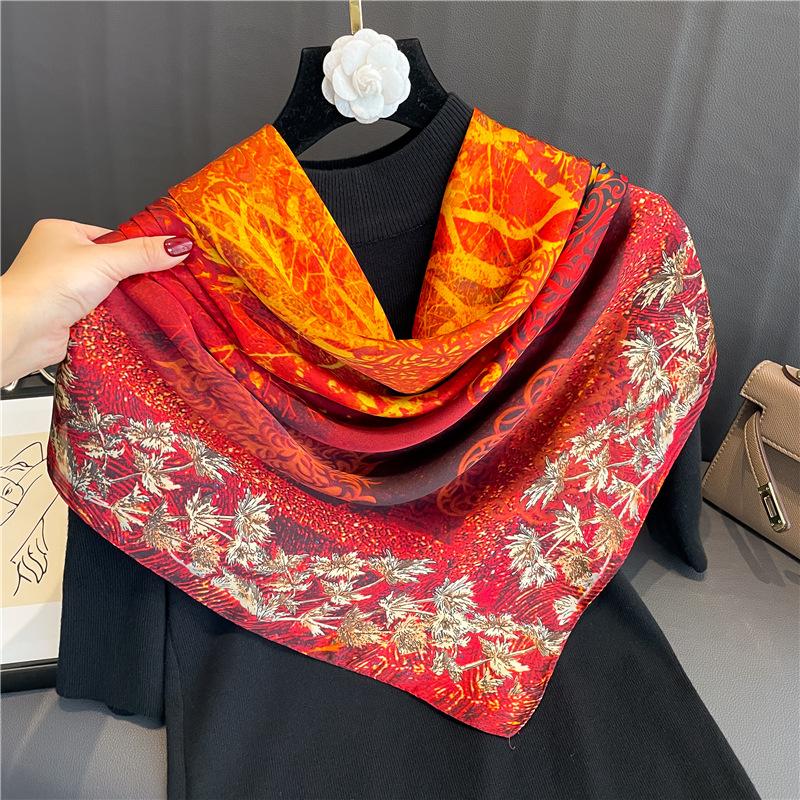 Bufanda de seda artificial árbol de la fortuna 110cm protección solar versátil chal elegante para mujer bufanda de viaje doble uso Bufanda de Moda