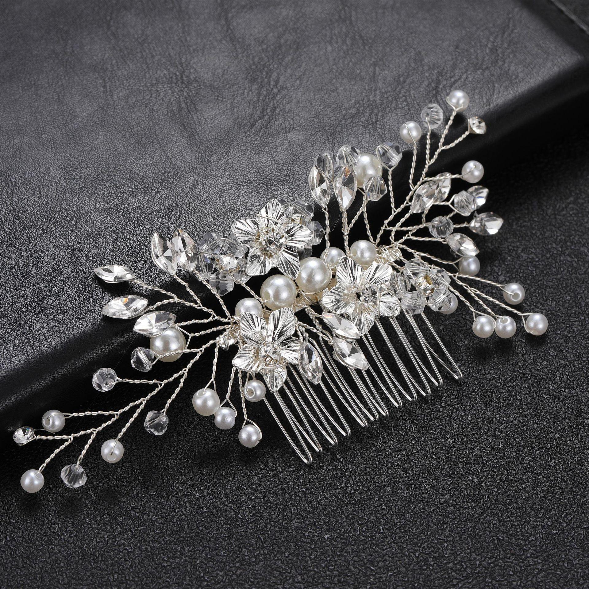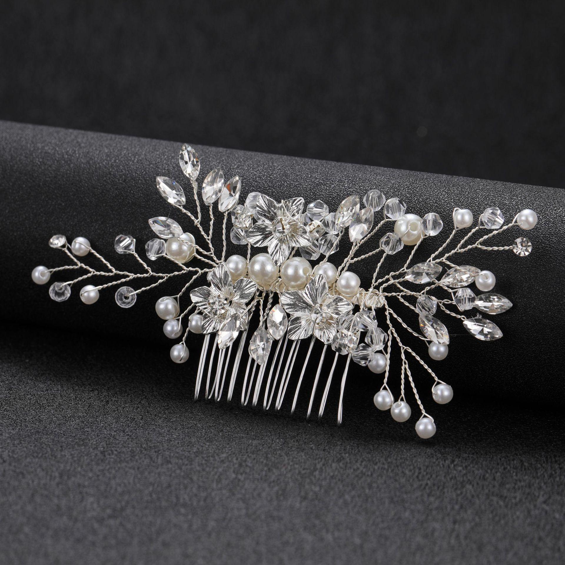 Peineta para el cabello con flores de cristal y aleación de plata transfronteriza europea y americana, accesorios para novias y bodas.