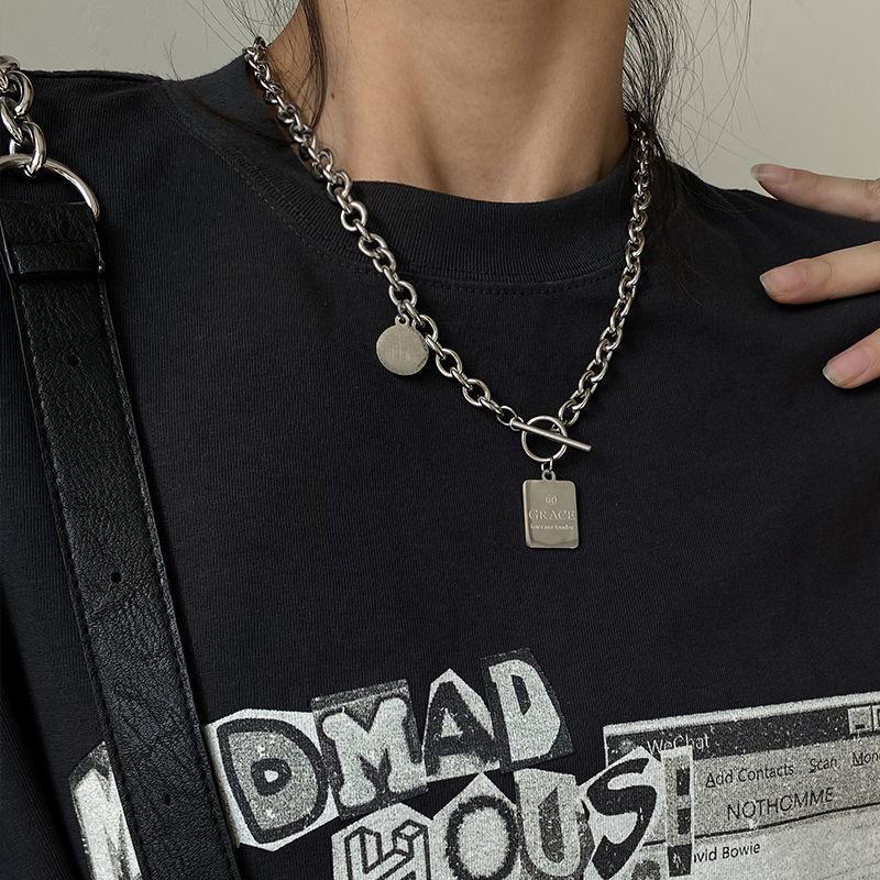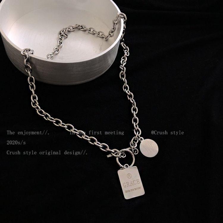 Collar con letras de marca cuadradas y redondas de hip-hop para estudiantes, estilo europeo y americano, cadena de clavícula con lazo moderno, accesorios de cadena de lana que combinan con todo.