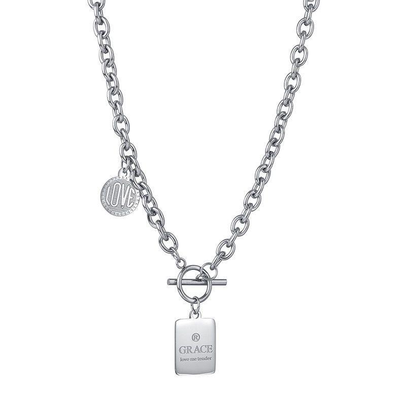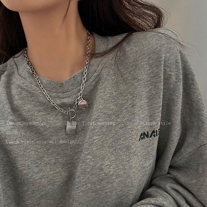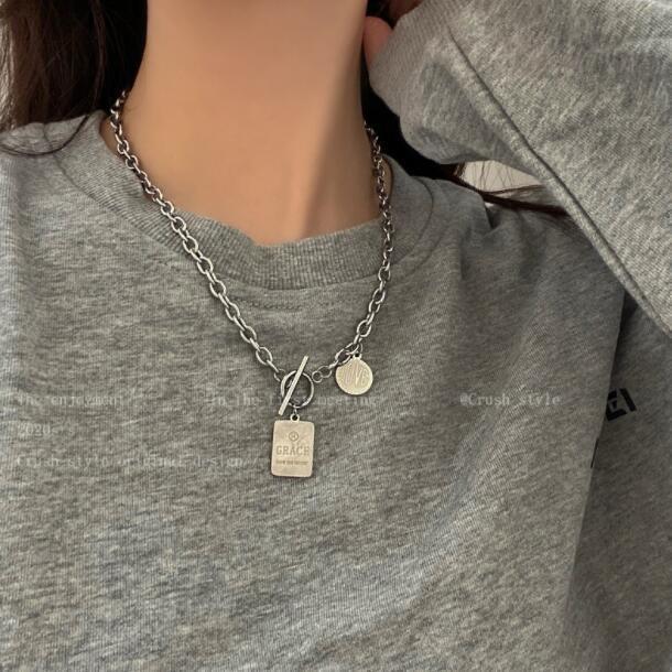 Compra Collar con letras de marca cuadradas y redondas de hip-hop para estudiantes, estilo europeo y americano, cadena de clavícula con lazo moderno, accesorios de cadena de lana que combinan con todo. al por mayor en Joom.pro