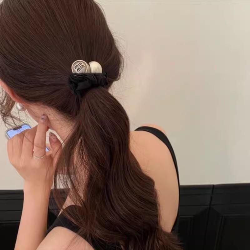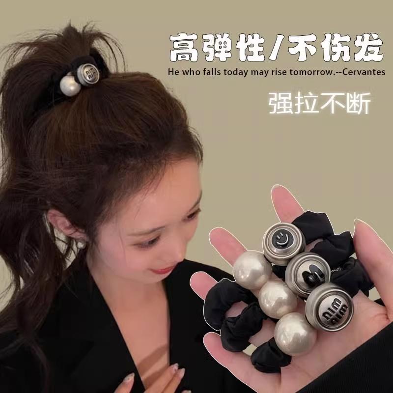 Anillo Elástico para el Cabello de Intestino Grueso con Perla de Imitación Simple Tendón de Goma Cuerda para el Cabello de Niña Elegante Cuerda para el Cabello de Bola Cuerda para el Cabello Adornos para el Cabello