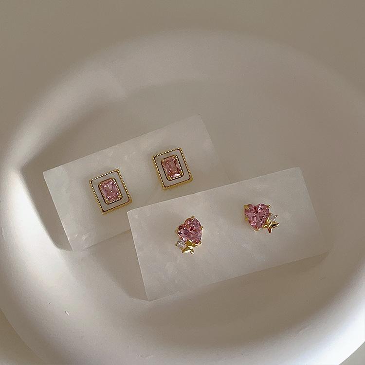 Pendientes de circonita rosa dulce para mujer, estilo coreano, vintage, distintivos, sencillos, combinables y elegantes.