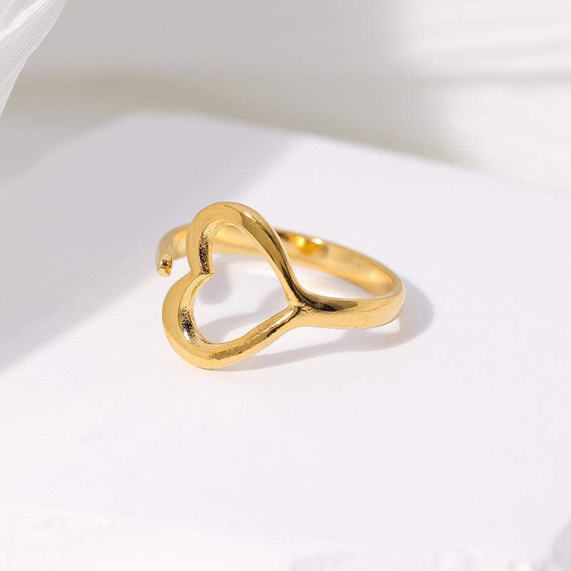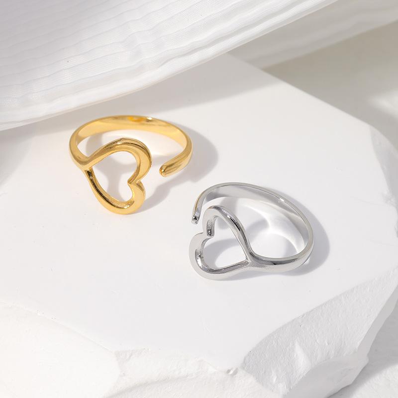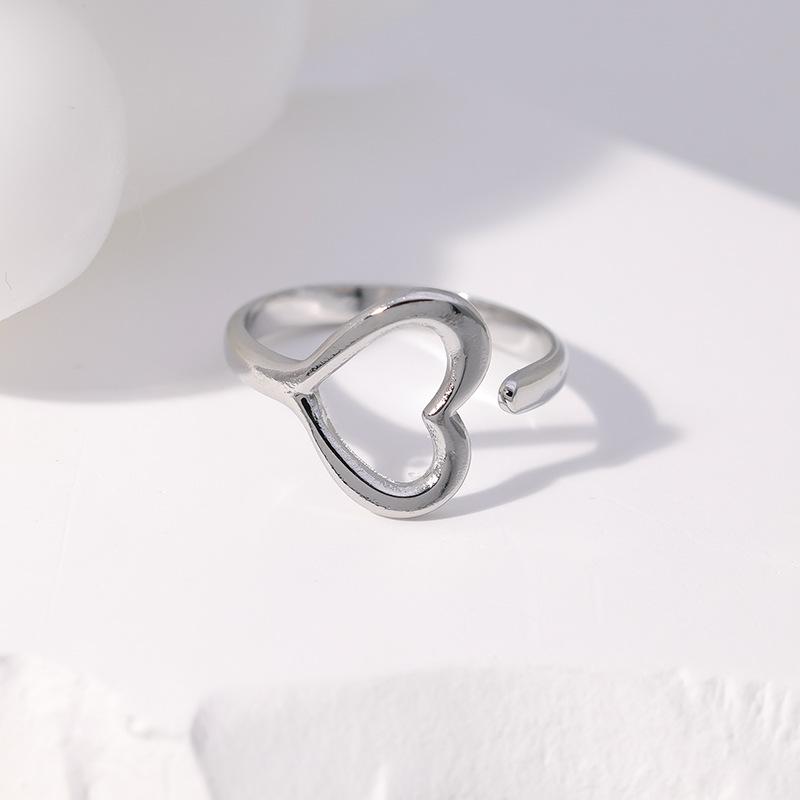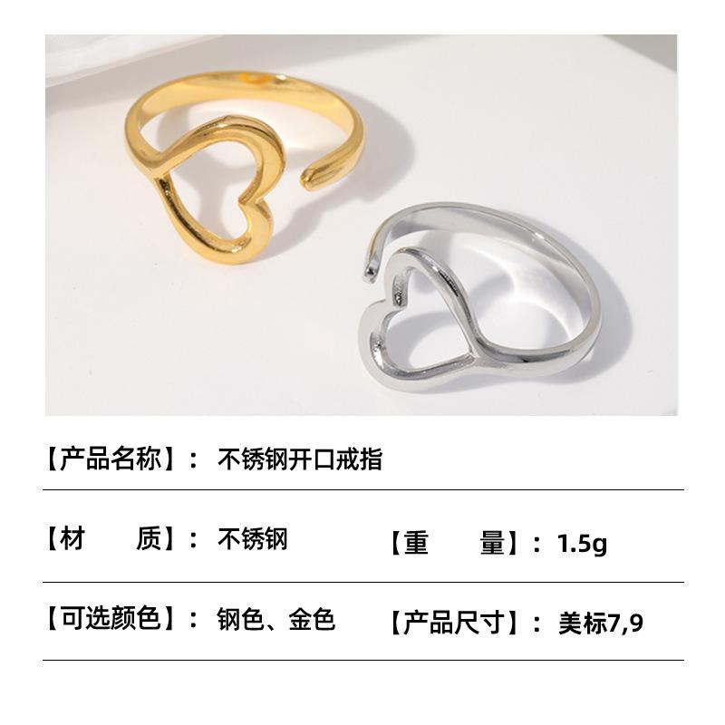 Anillo de acero de titanio transfronterizo europeo y americano para mujer, anillo abierto en forma de corazón, ligero, de lujo, sencillo, de acero inoxidable coreano, venta al por mayor