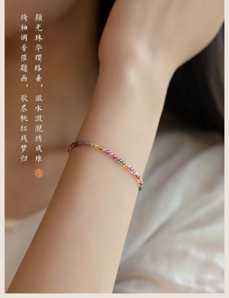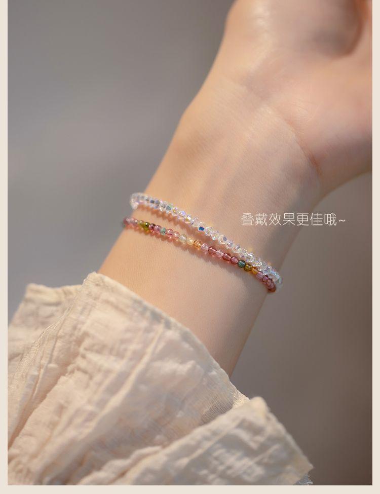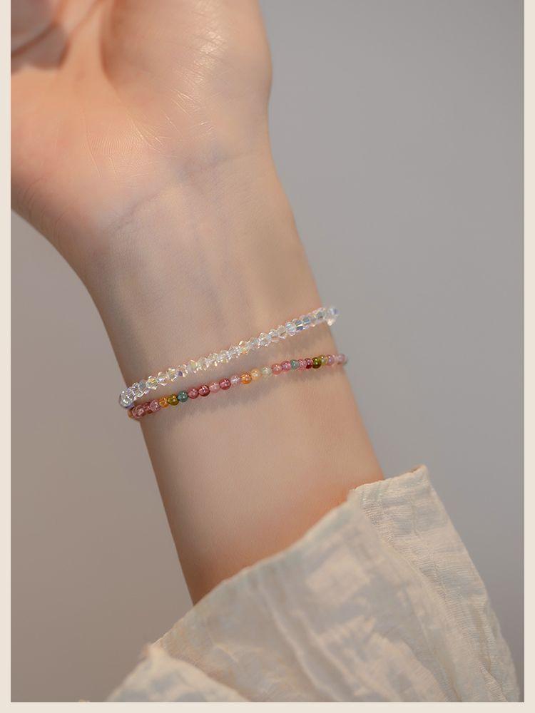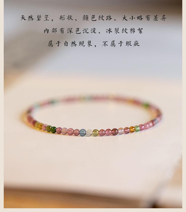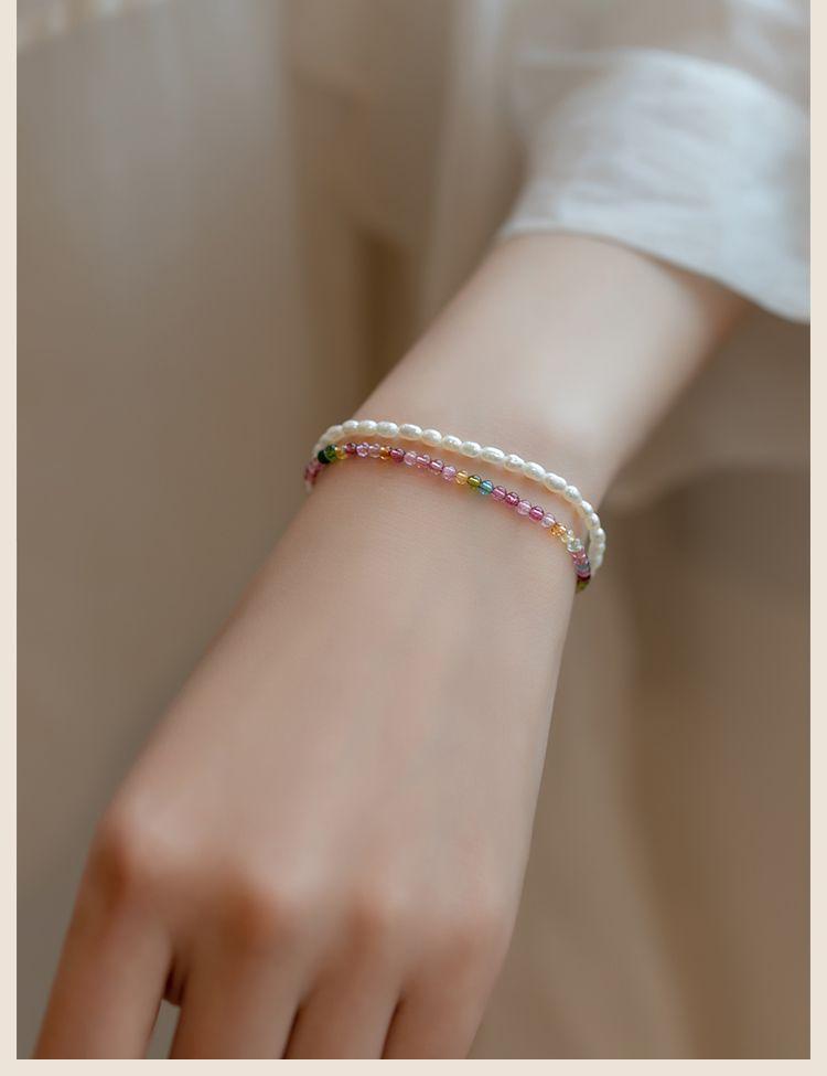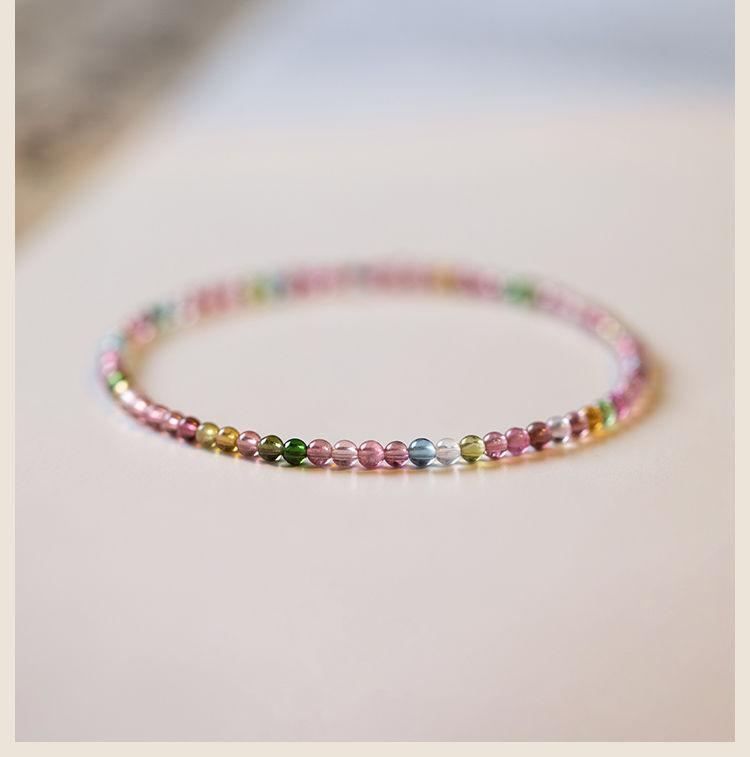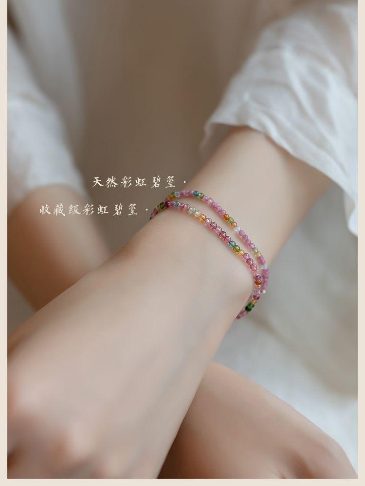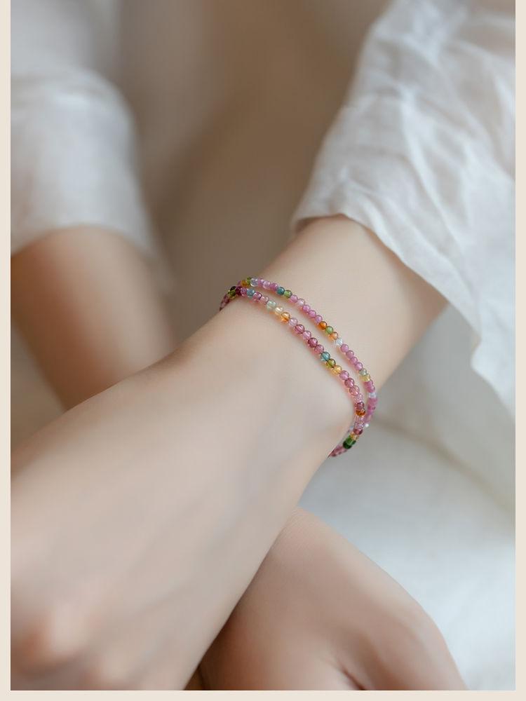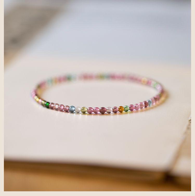 Pulsera de Cuentas de Mijo Pulsera de Piedra Natural Fina Turmalina Arcoíris Pulsera Cuerda de Nudo Superpuesta Texturizada Accesorios Ultrafinos