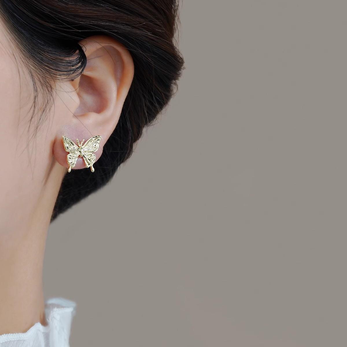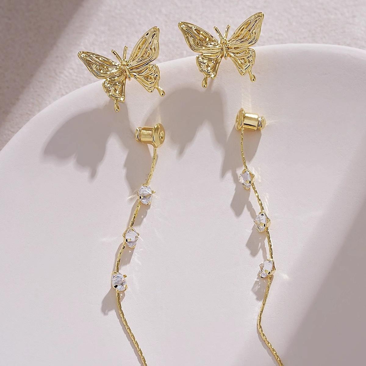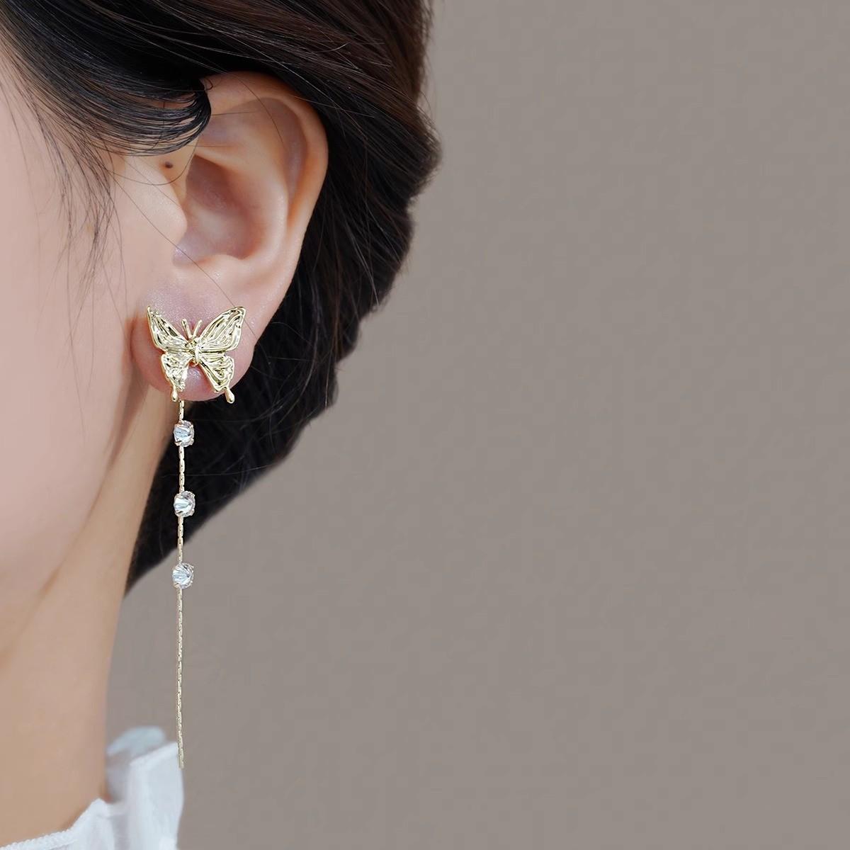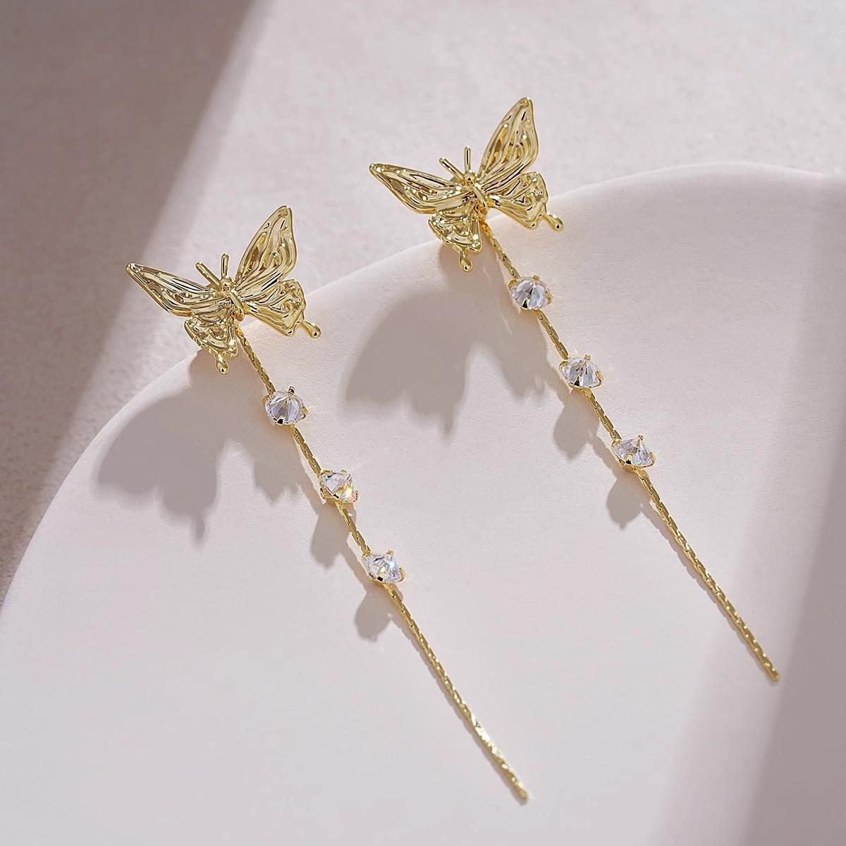 Pendientes de Borla de Zircón de Mariposa de Moda Aguja de Plata Pendientes Simples de Gama Alta que Combinan con Todo Pendientes Dulces Estilo Ins de Corea del Sur