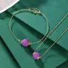 Pulsera elegante para mujer con cuentas redondas en relieve personalizadas retro de mica morada natural bañada en oro de plata esterlina S925 de Yilu