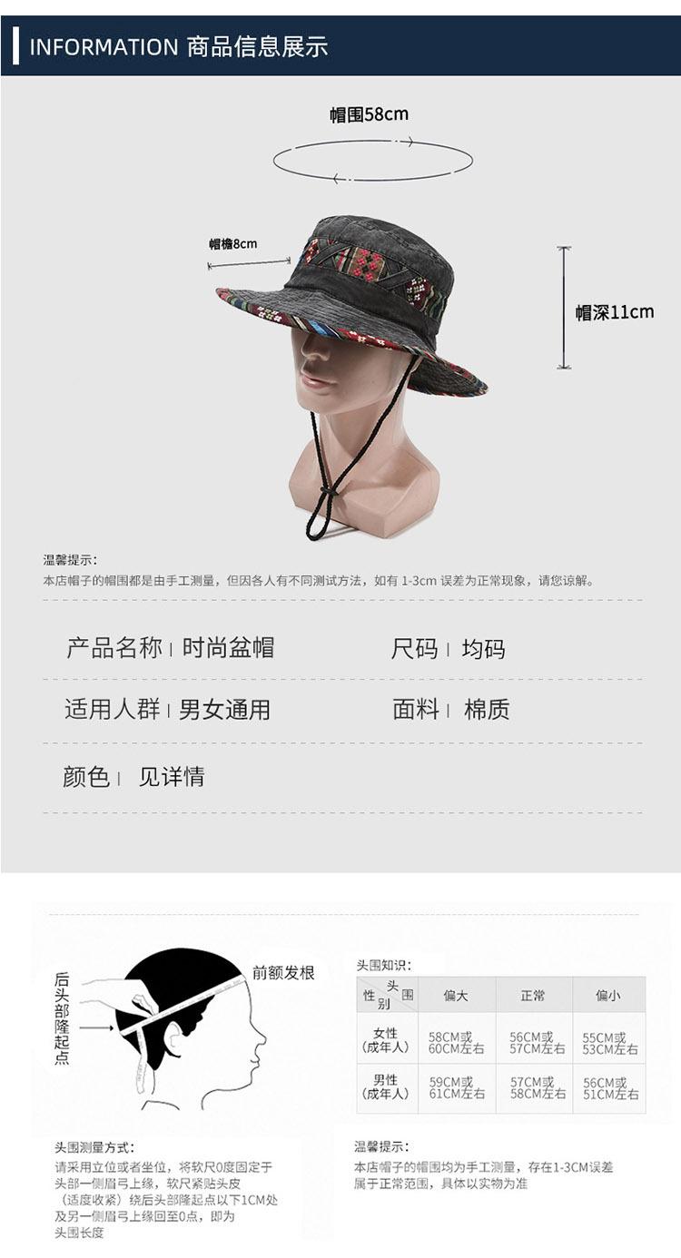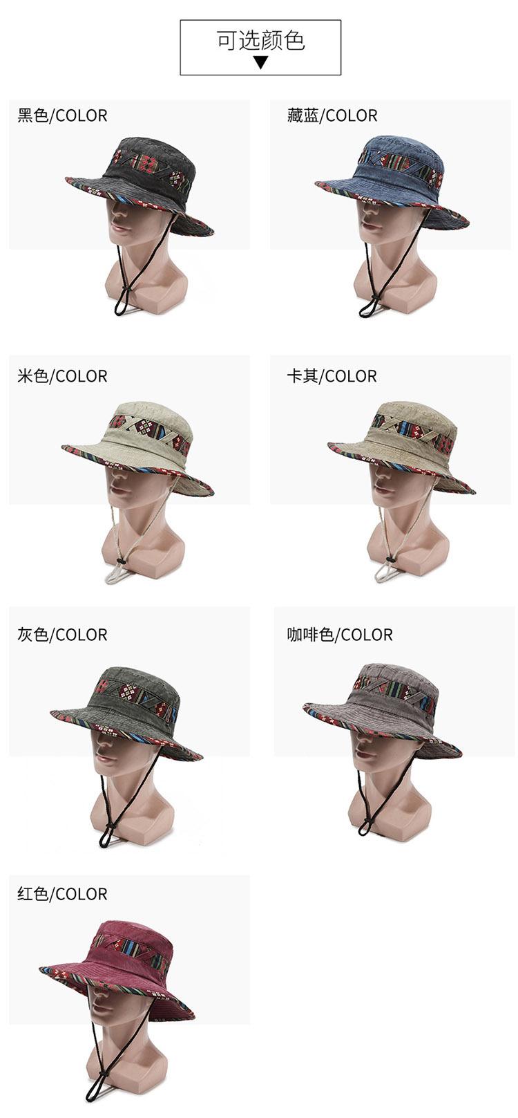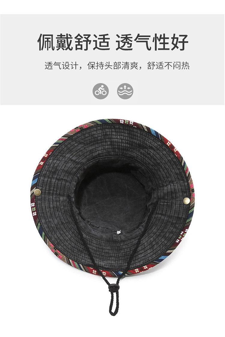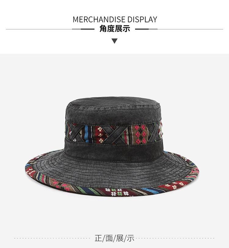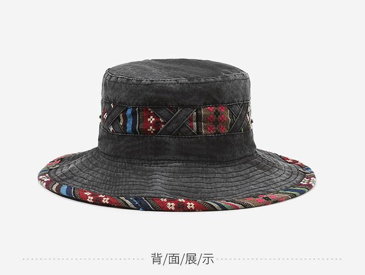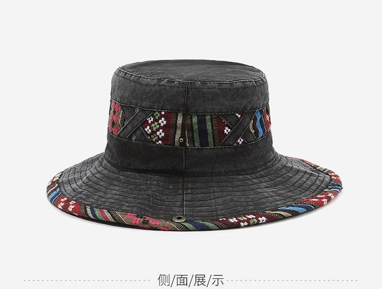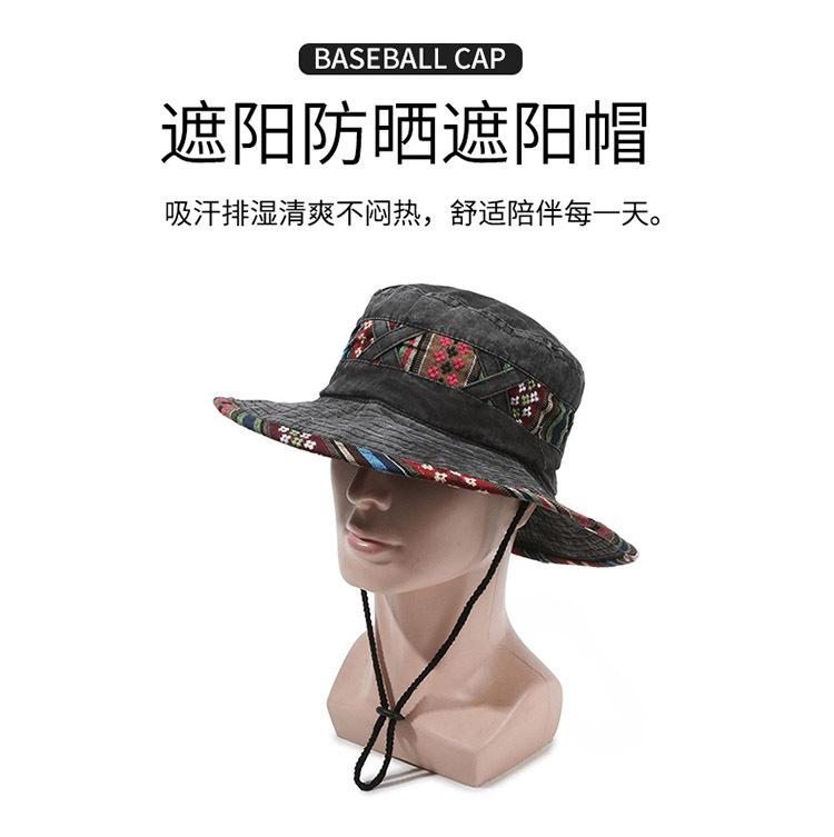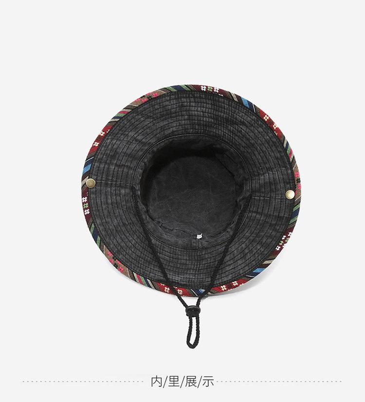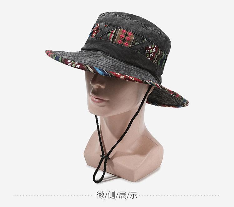 Sombrero de pescador de estilo étnico personalizado, sombrero para el sol de moda para primavera y verano al aire libre, sombrero de estilo retro lavado estilo antiguo de calle grande.