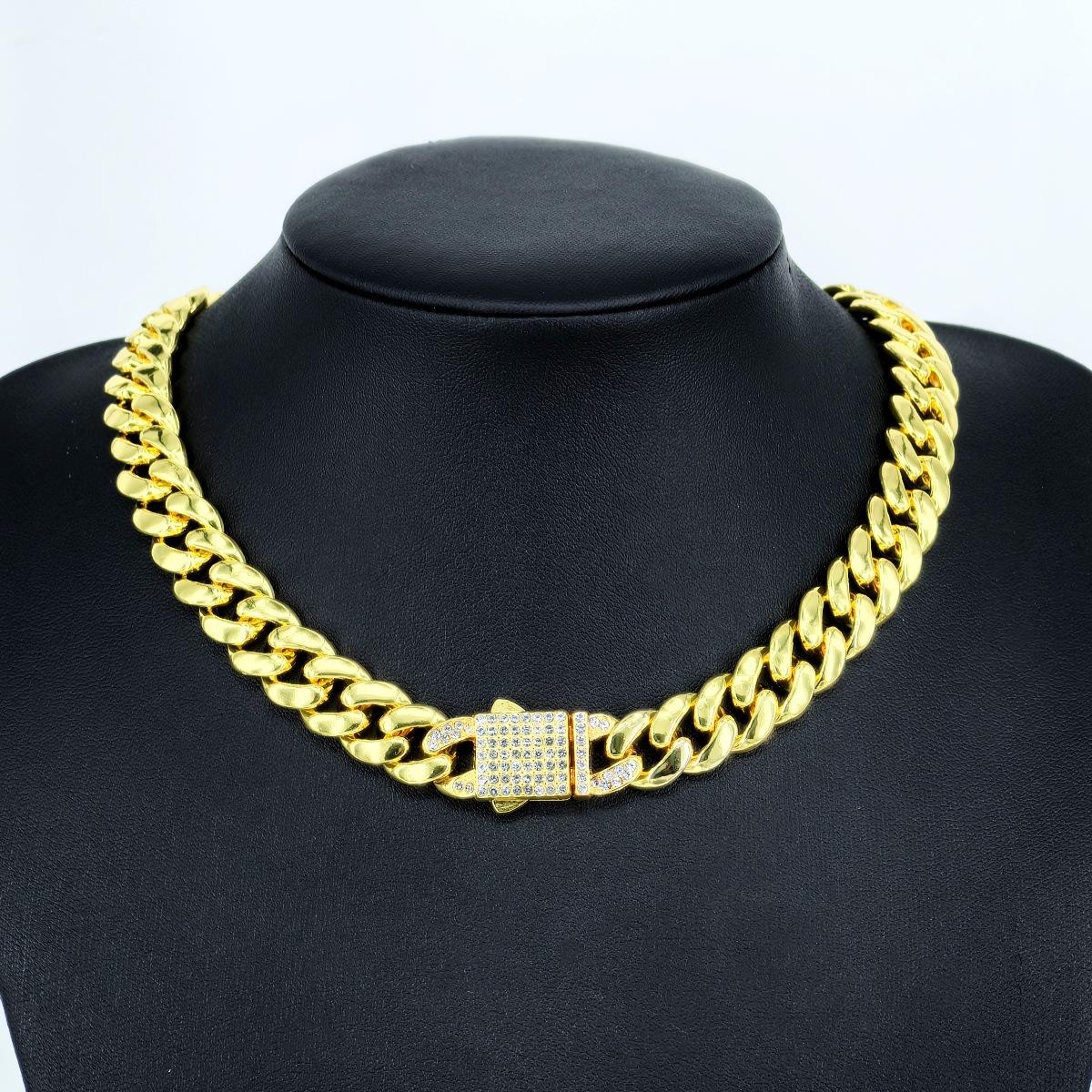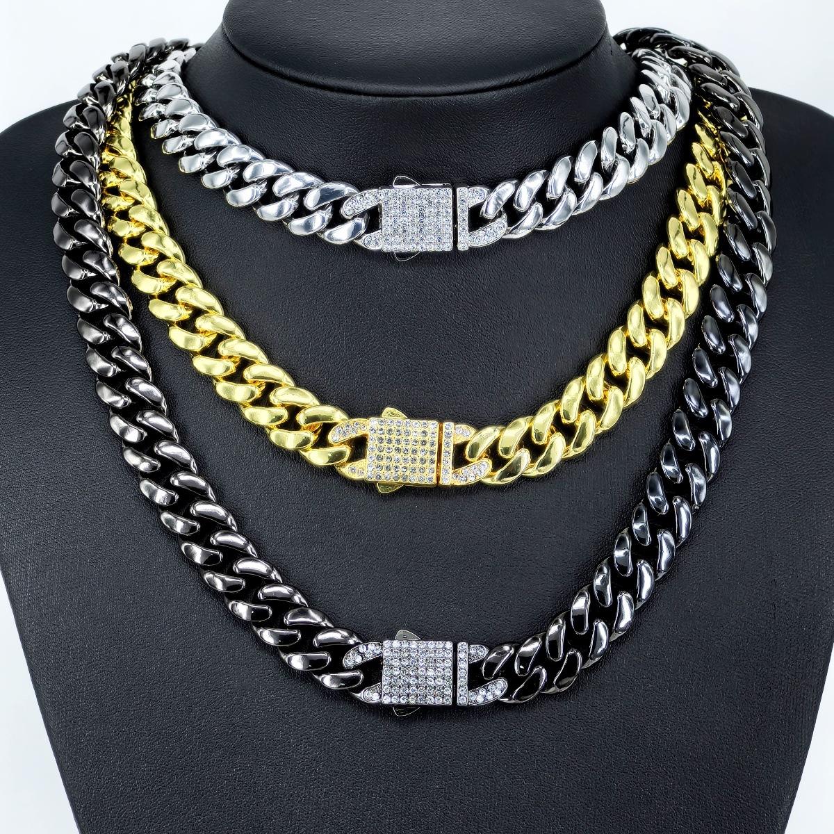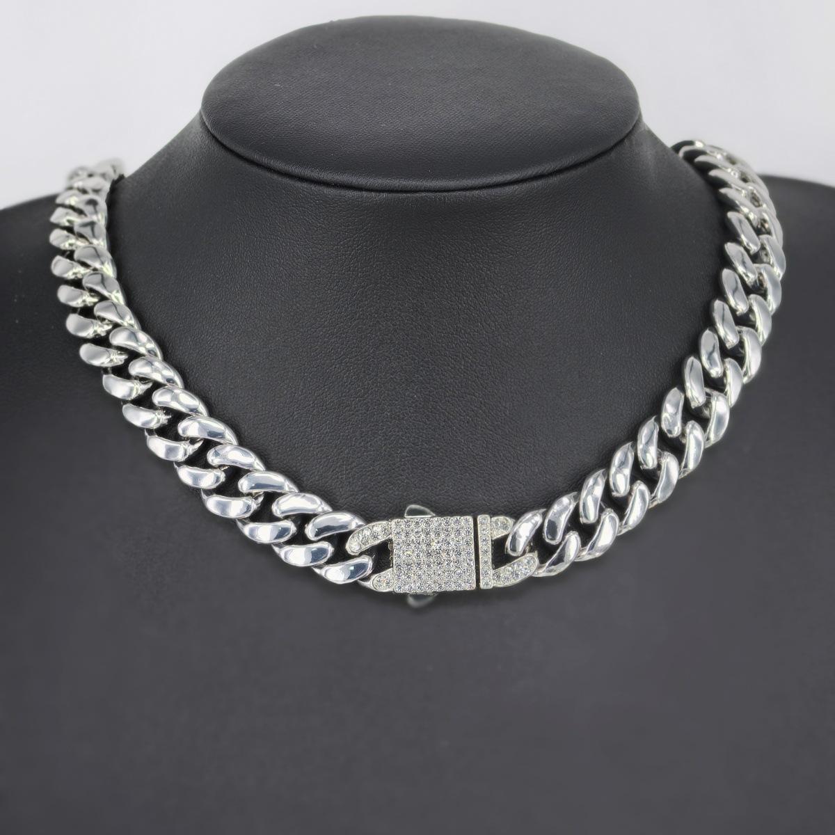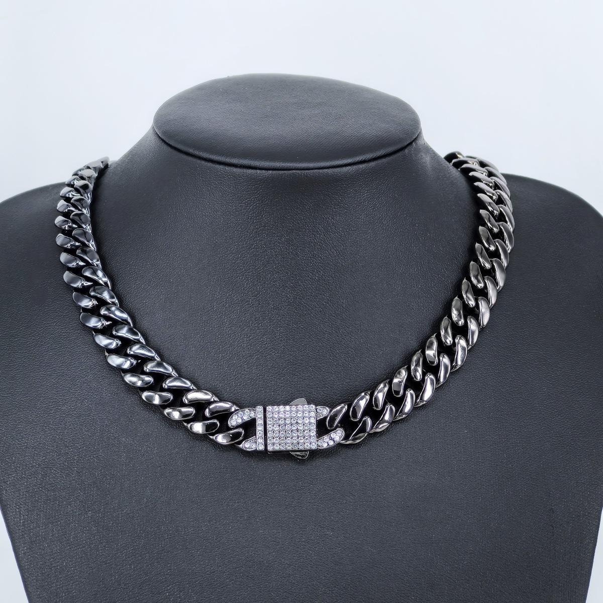 Europa y Estados Unidos Collar de hombre de aleación con hebilla de resorte redonda lisa de 12 mm, de alta calidad, hipster, transfronterizo, hip-hop, cadena cubana