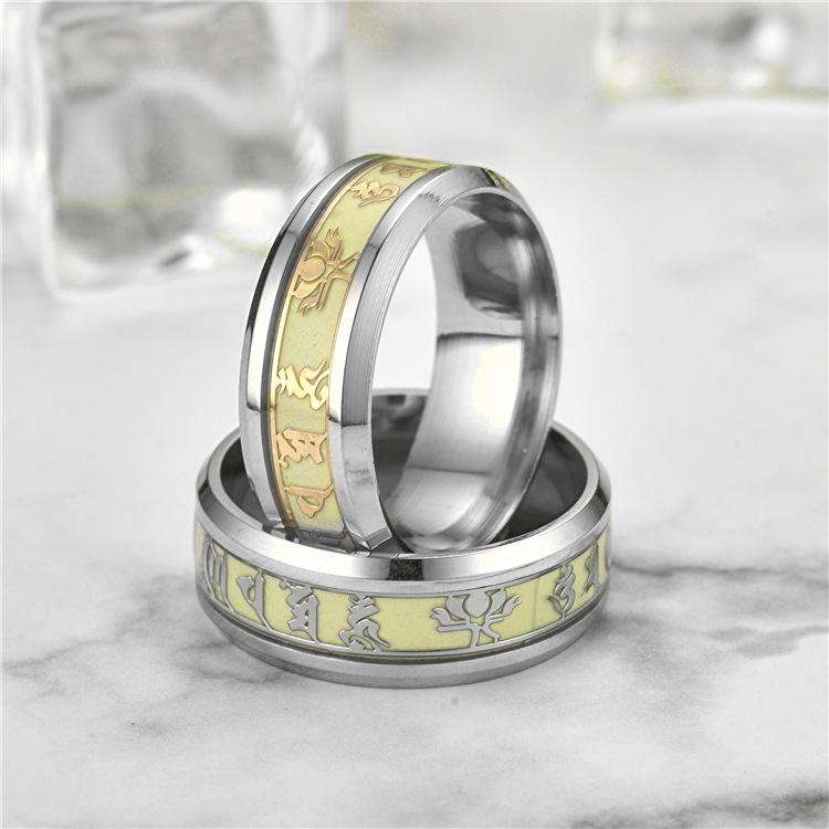 Nota: El anillo disponible es completamente plateado. La luz que emite el embrión del anillo por la noche es de color amarillo verdoso.
