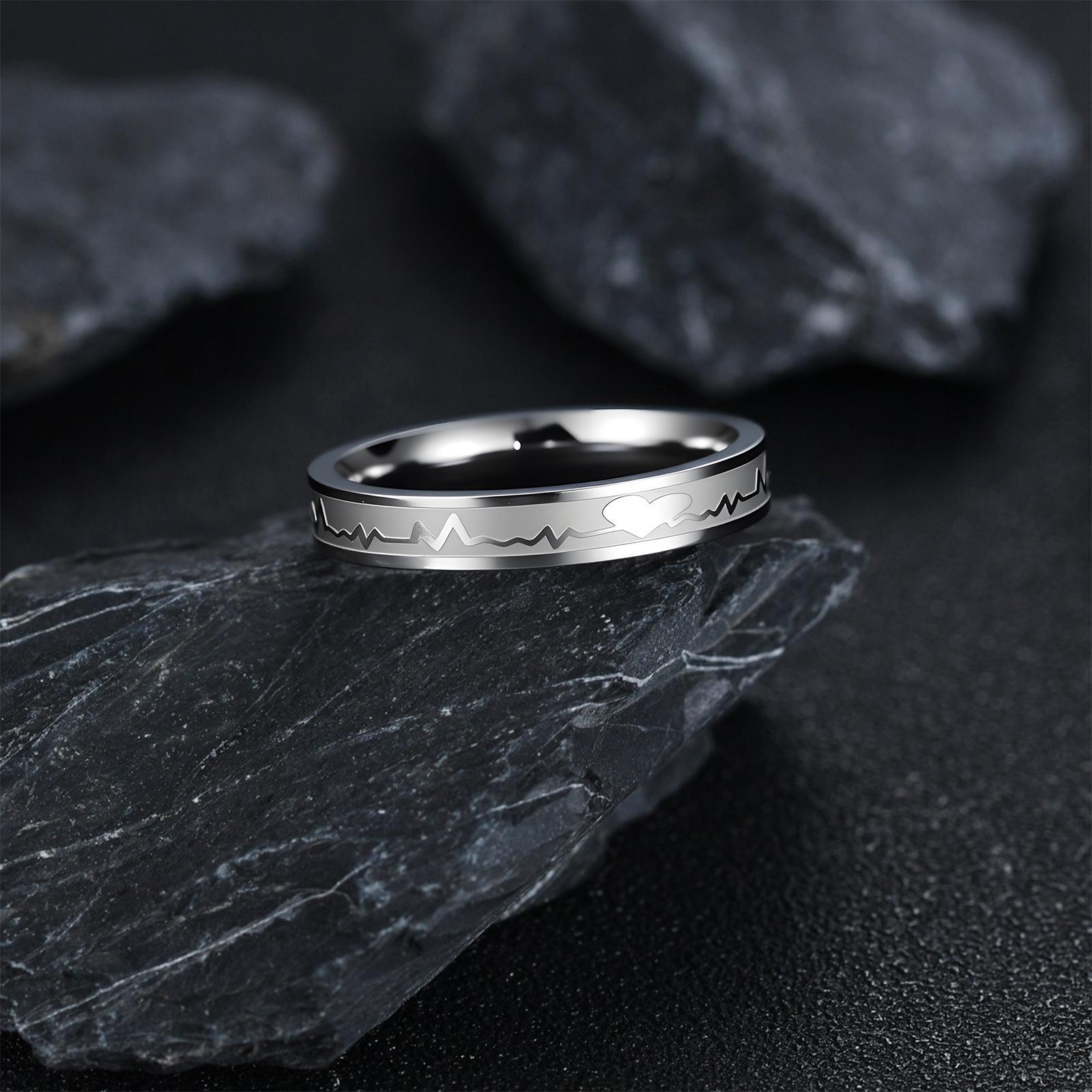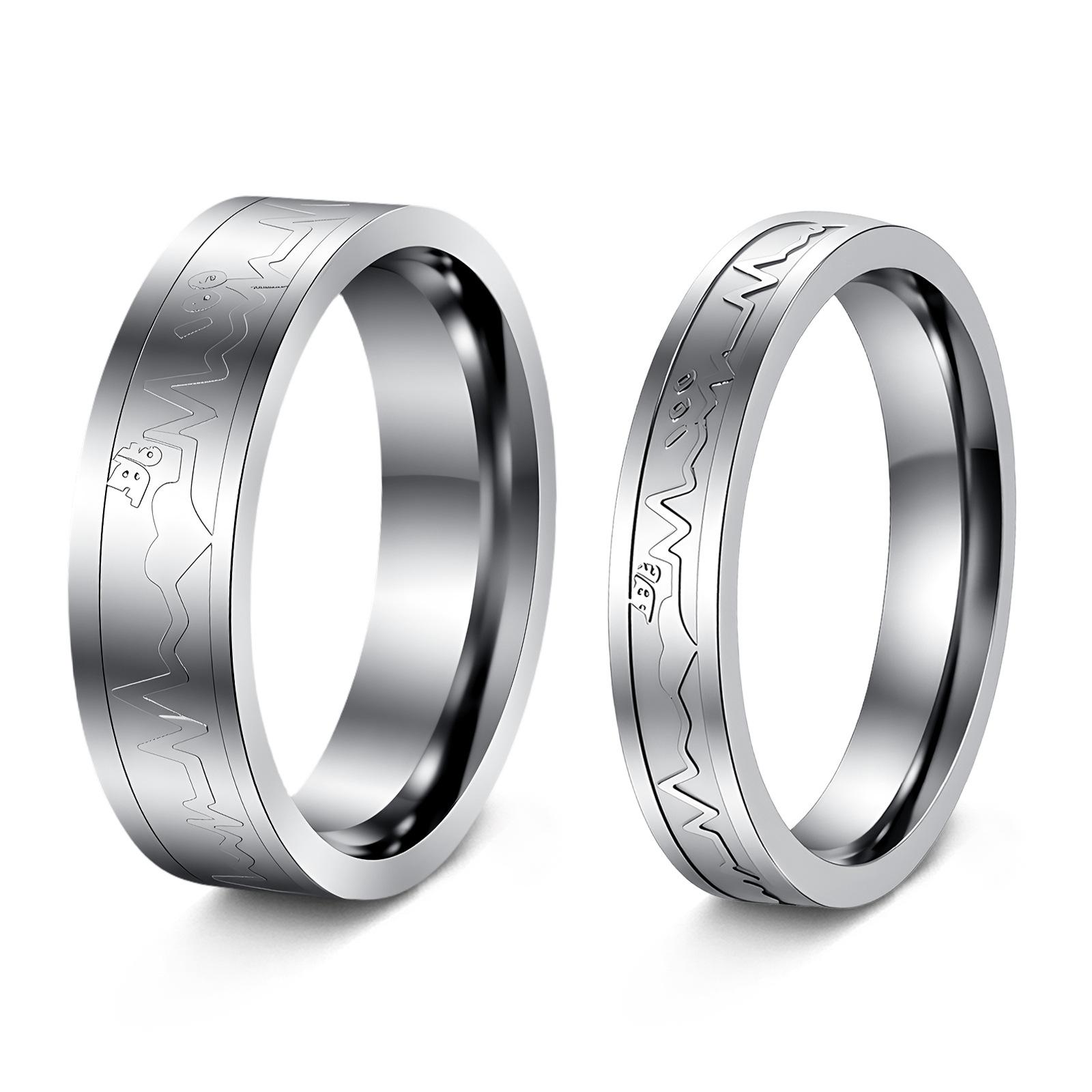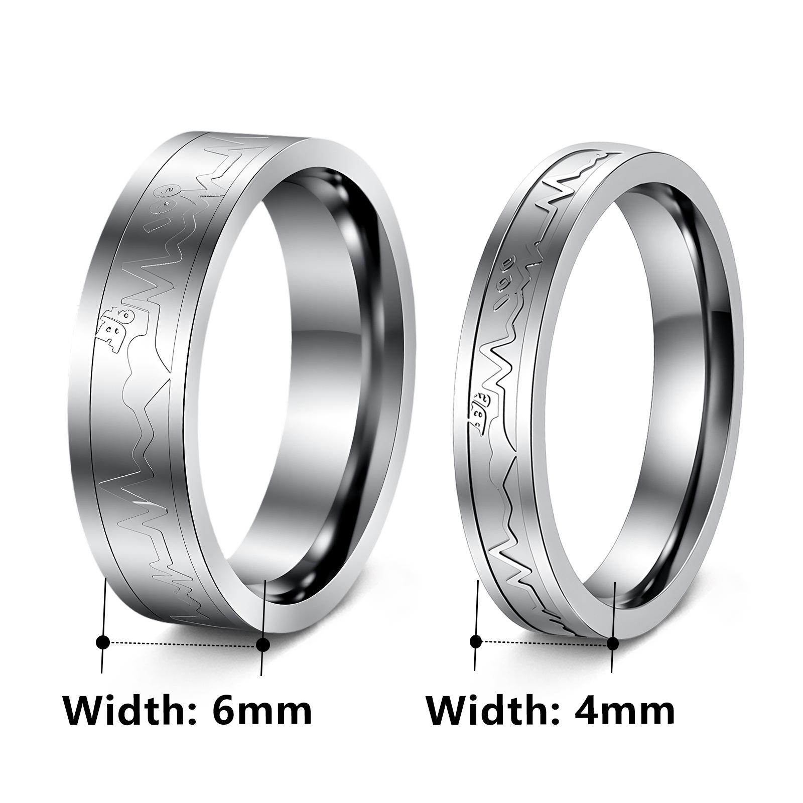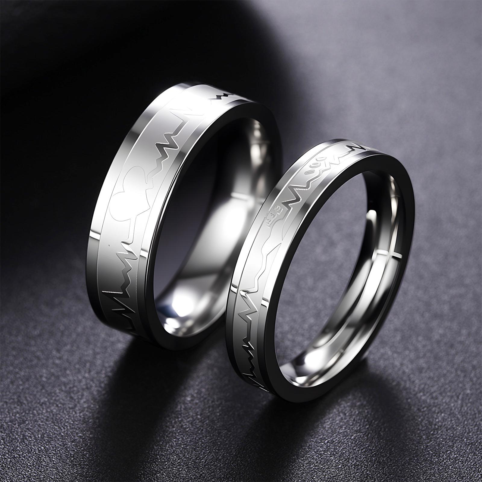 Anillos de Pareja de Electrocardiograma de Acero Inoxidable para Hombre y Mujer, Par de Anillos, Anillo de Cola Meñique, Joyería Personalizada, Anillos de Pareja