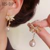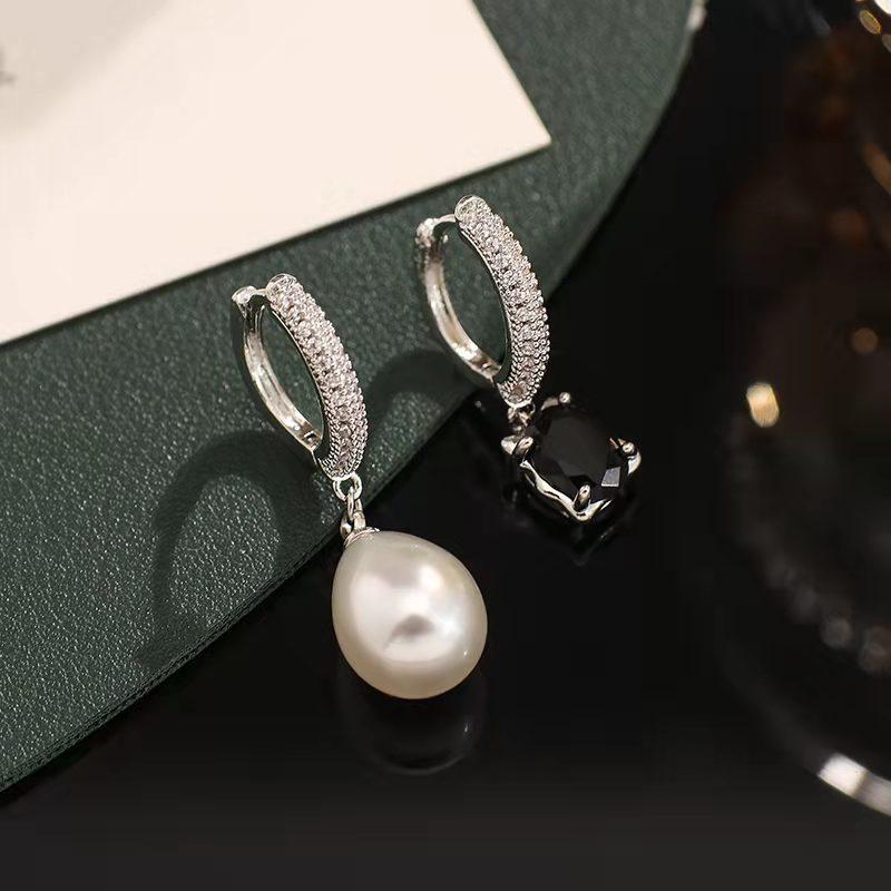 Pendientes de perlas asimétricas con temperamento de hada francesa, diseño personalizado, pendientes exquisitos con microincrustaciones de alta gama de moda para mujer