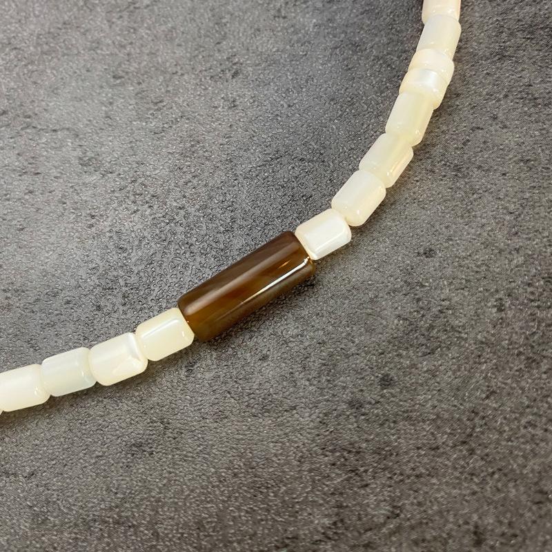 Collar de cuentas de ágata con forma de mariposa blanca de nicho (2022), cadena de clavícula con textura distintiva y apilada.