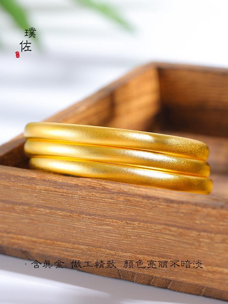 El color por dentro y por fuera no se desvanece durante mucho tiempo.. Oro Arena Vietnamita Versión Ancha Método Antiguo Heredado Espalda de Locha Anillo Liso Pulsera Pulsera Regalo