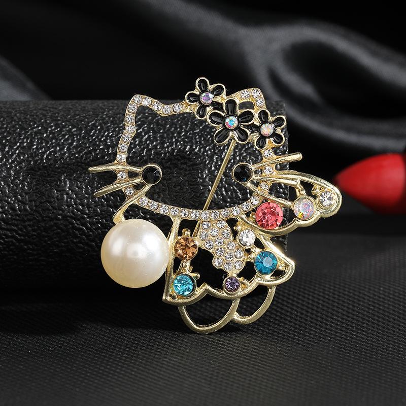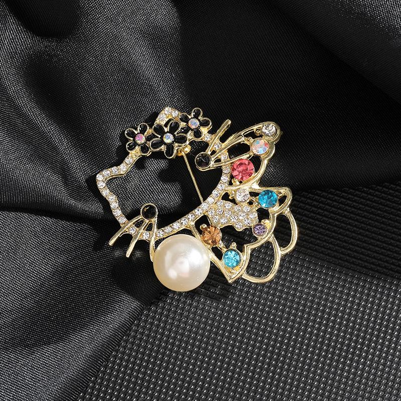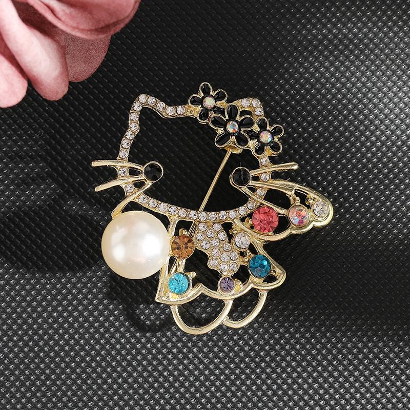 Broche de gato de dibujos animados con diamantes de imitación de colores, bonito broche para abrigo, ramillete de moda simple, joyería para mujer