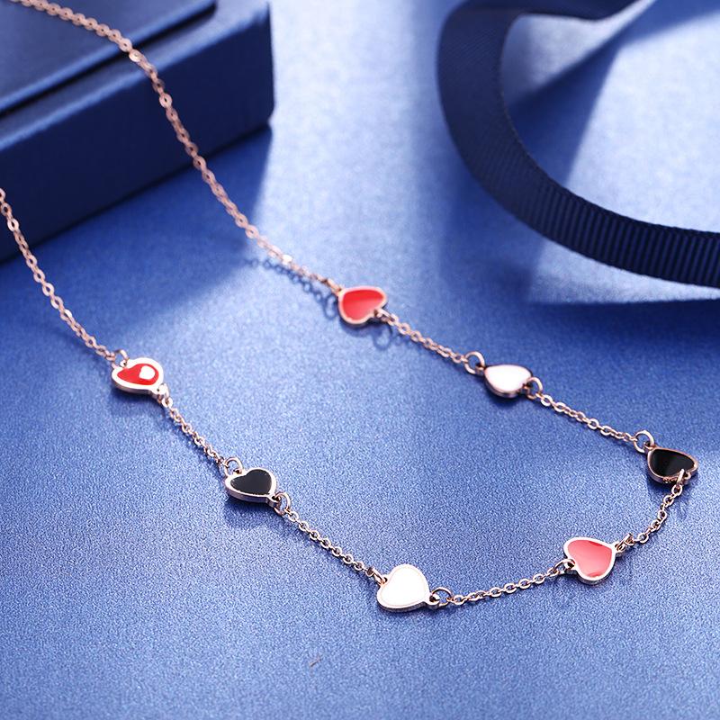 Nuevo y creativo collar de acero de titanio de tres colores con siete corazones para mujer, cadena de clavícula en forma de corazón de oro rosa y acero de titanio, joyería pequeña al por mayor