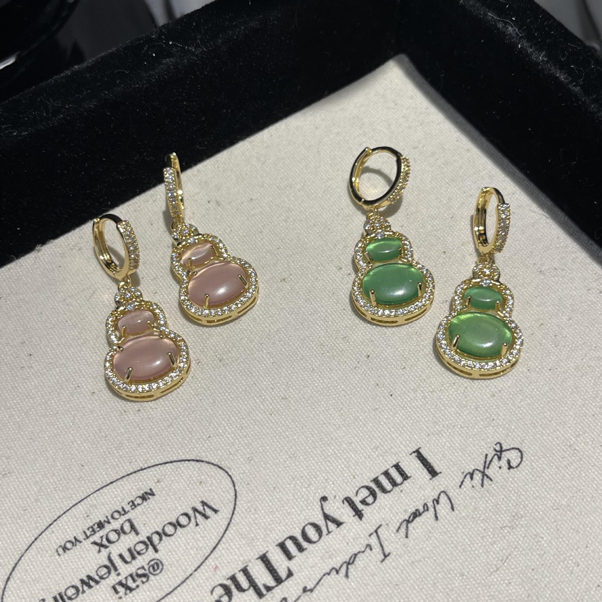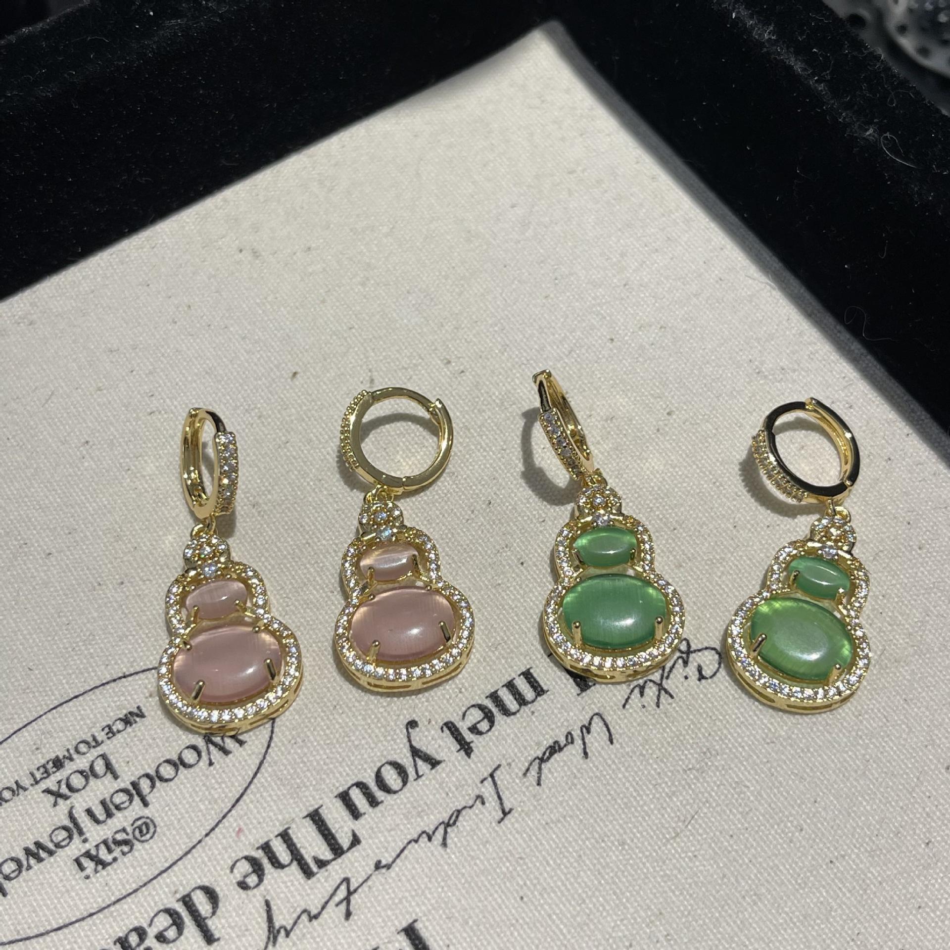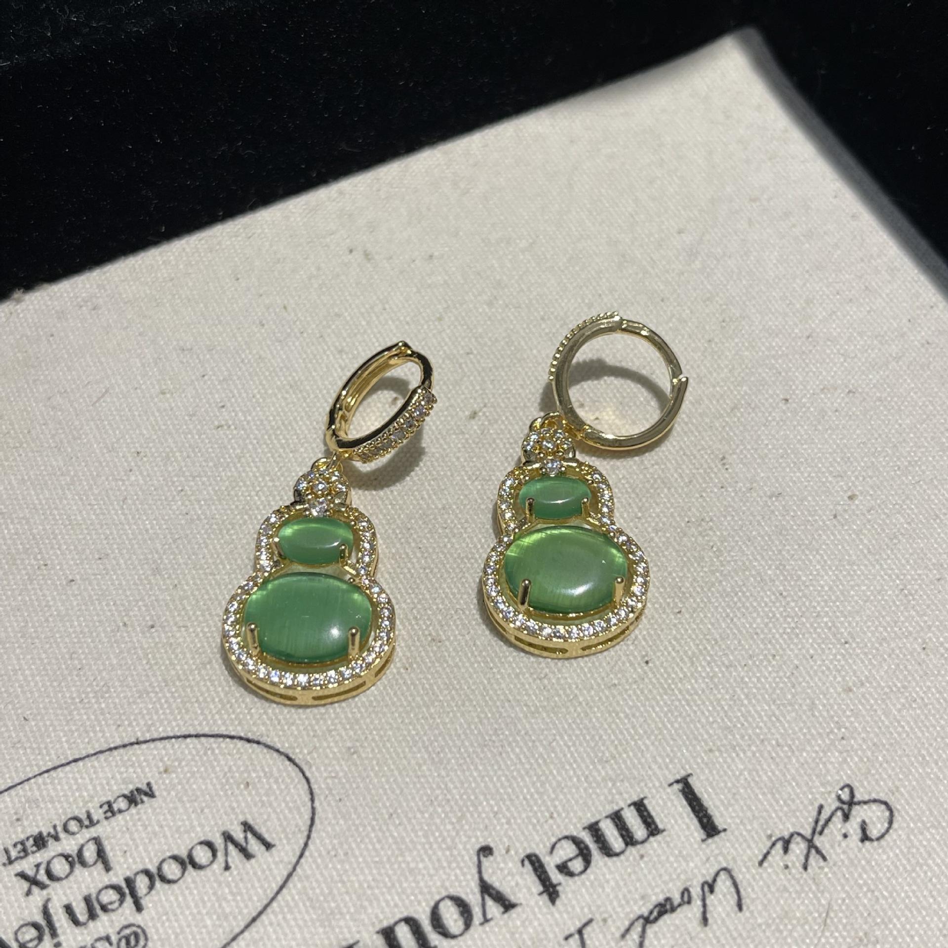 Nuevos pendientes de calabaza de estilo antiguo chino con microincrustaciones de circonita, elegantes pendientes de transferencia de moda para mujer, ligeros y de lujo.