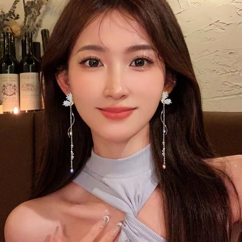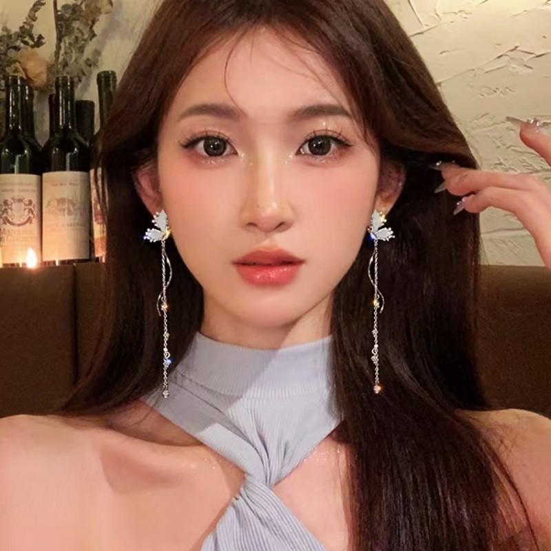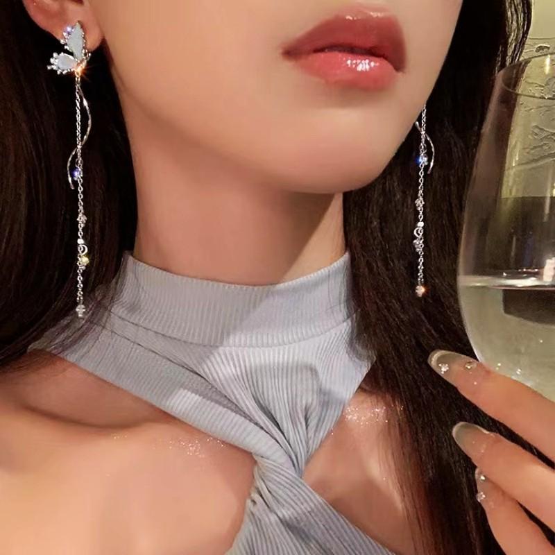Pendientes largos con borlas de mariposa elegantes y dulces para mujer, ligeros, de lujo, de nicho, diseño avanzado, nuevos y exquisitos.