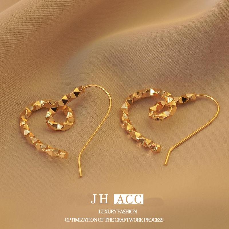 Pendientes de aleación de cobre, nuevos pendientes de metal con diseño de amor para mujer, pendientes de nicho ligeros de lujo a la moda con temperamento.
