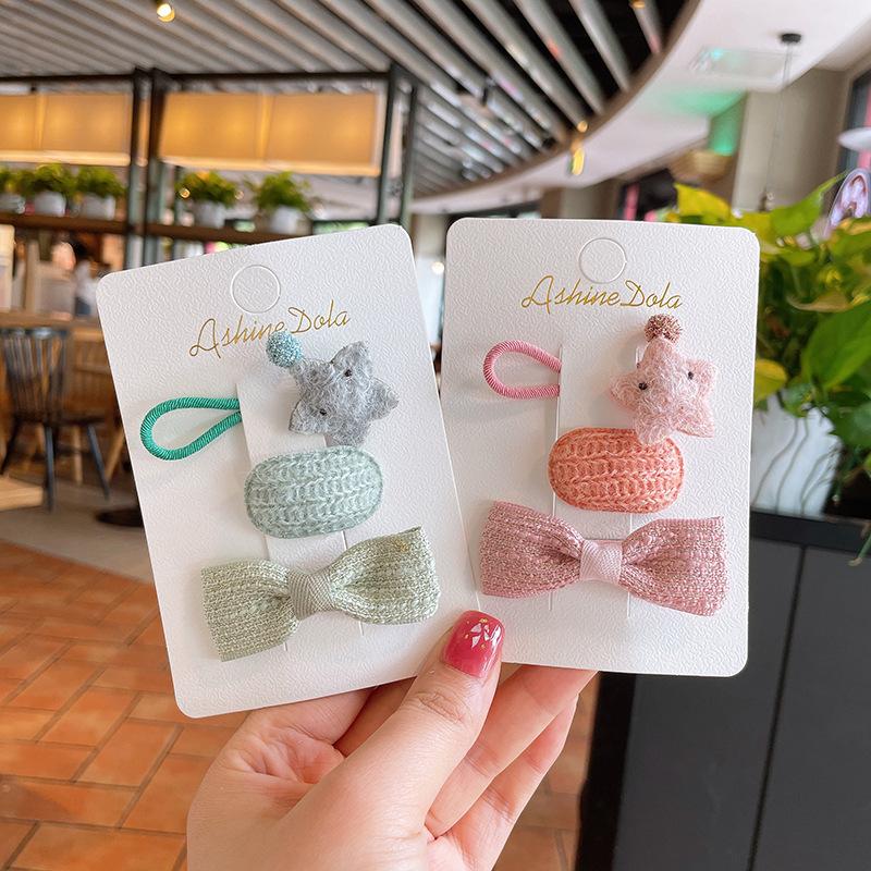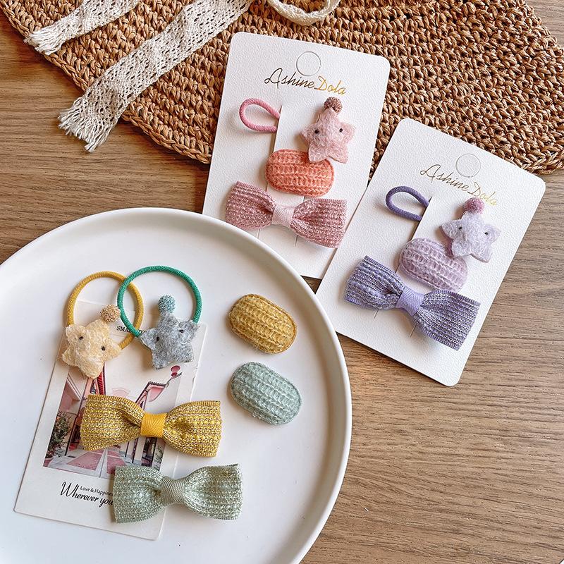Nueva horquilla de tela con lazo para niños de estilo coreano, linda estrella de cinco puntas, cuerda para la cabeza del bebé, clip BB de peluche para niña pequeña