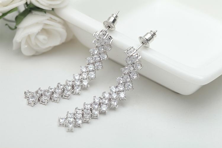 Pendientes exagerados de Jinse con aguja de acero y circonitas de cobre, joyería sencilla para banquetes nupciales de estilo europeo y americano para mujer.