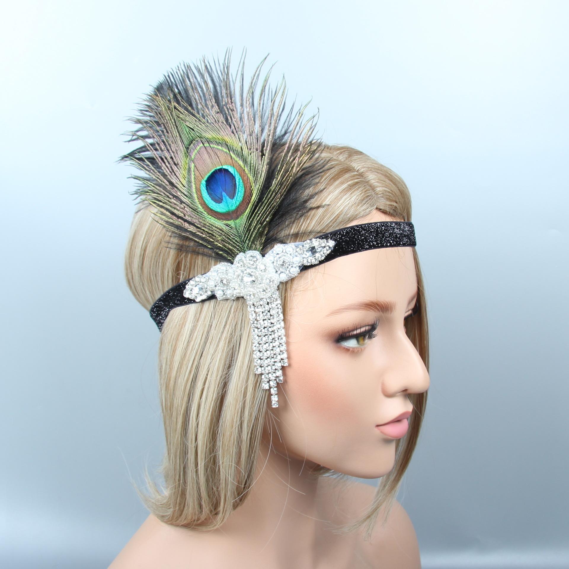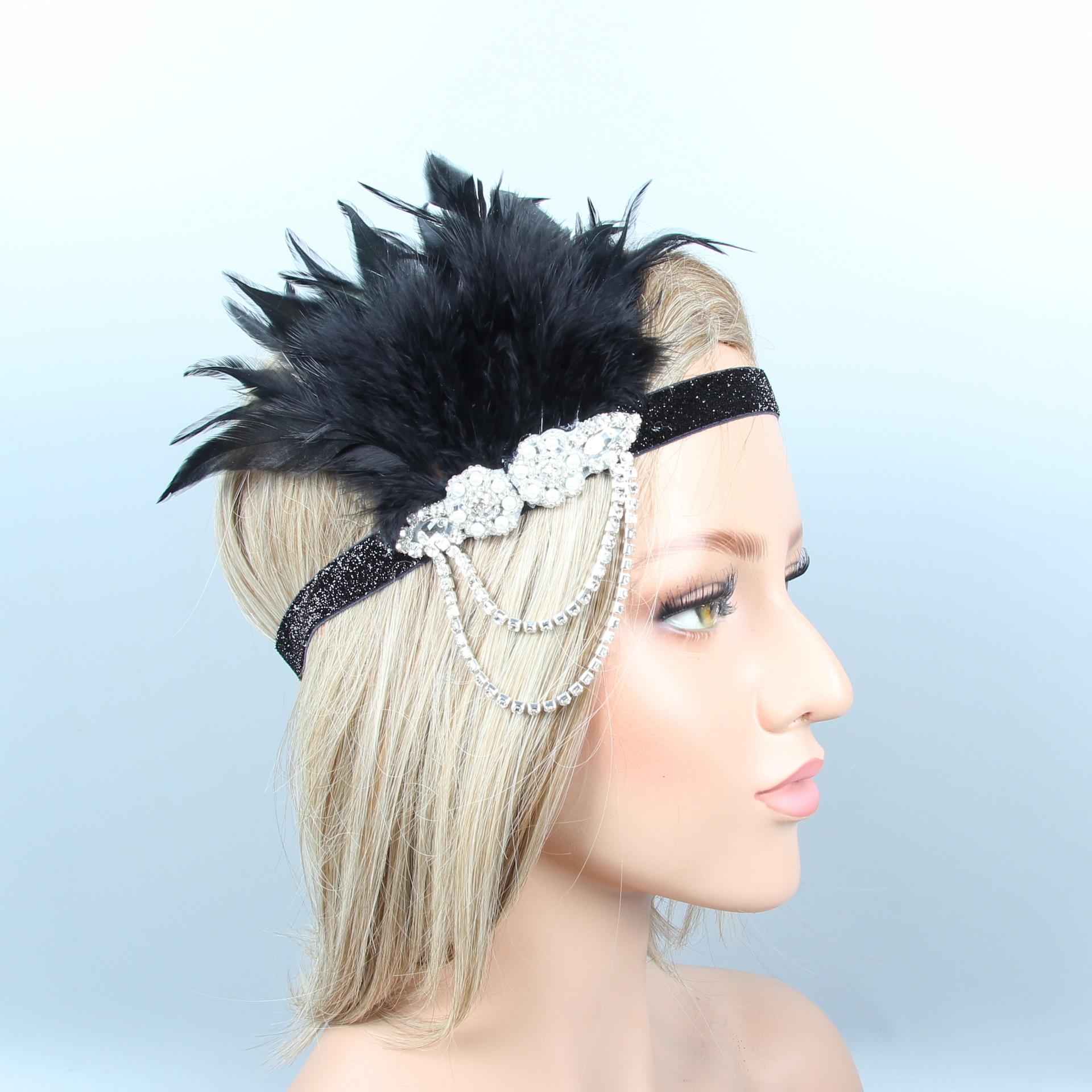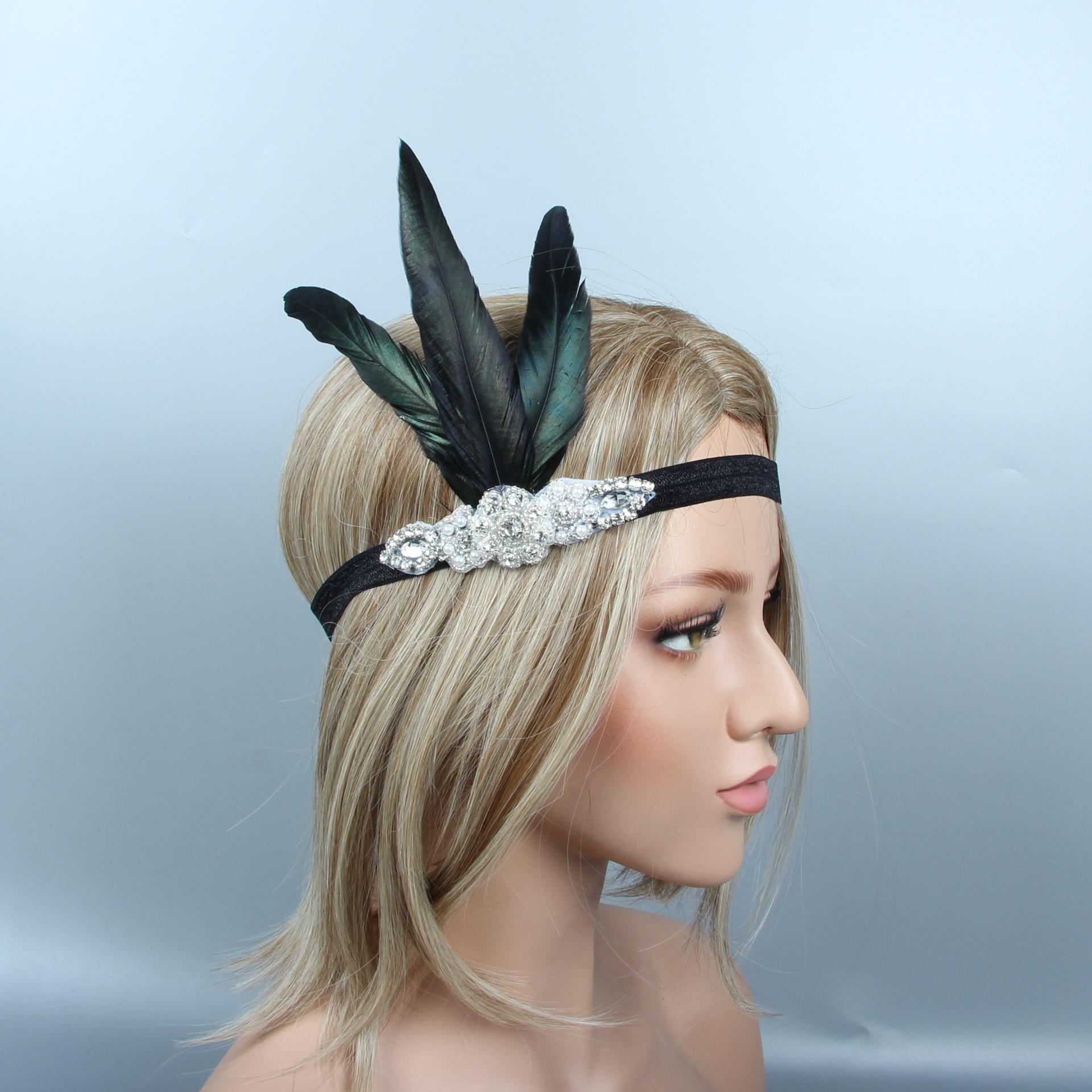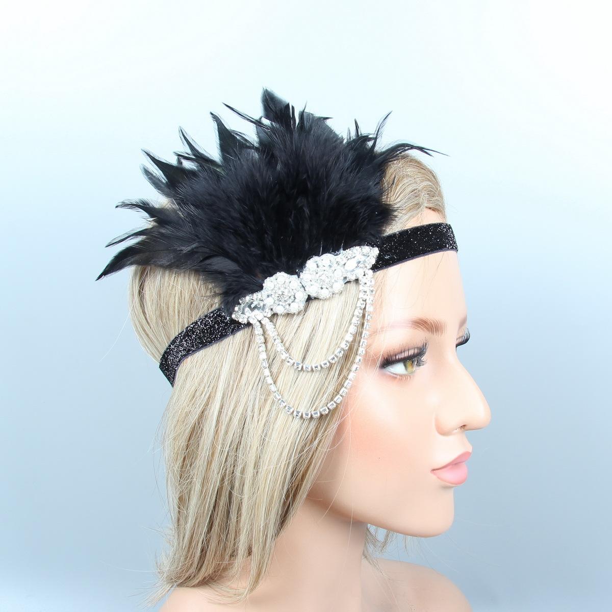 Tocado original hecho a mano de plumas negras diadema Great Gatsby tocado de fiesta HD34