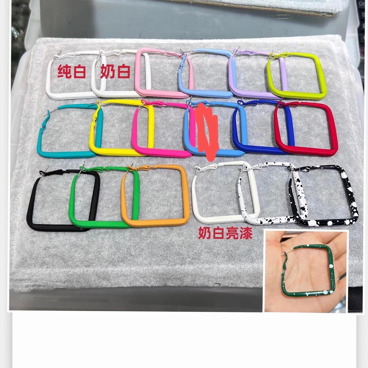 Pendientes de color caramelo, populares en Europa y América, con pintura dorada, aguja plateada, geométricos, cuadrados y exagerados, moda femenina.