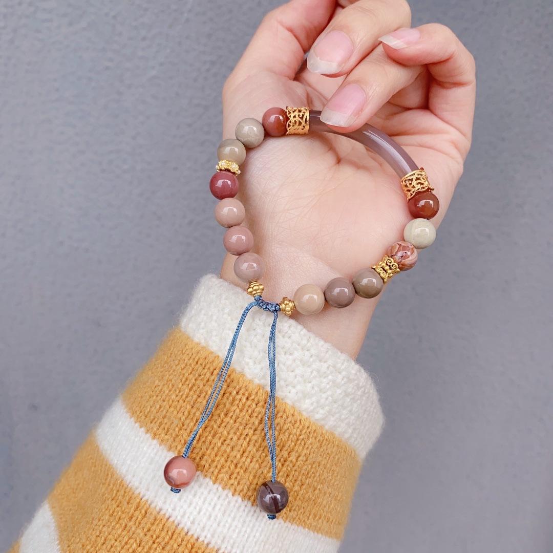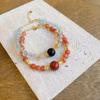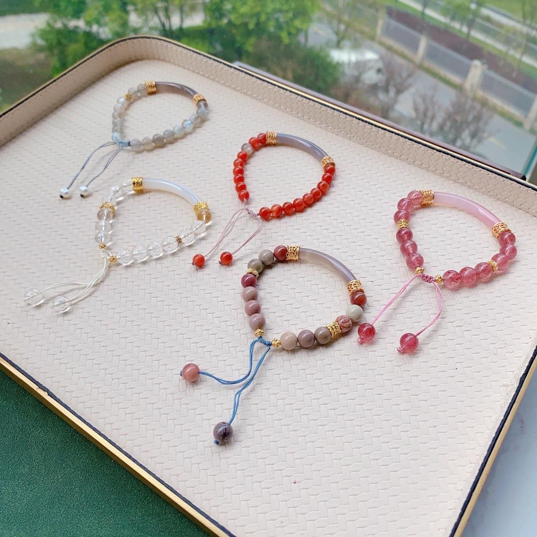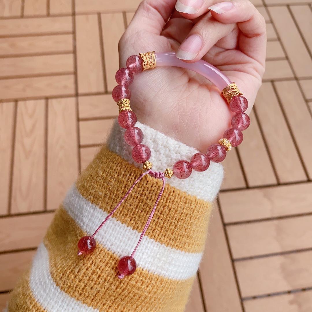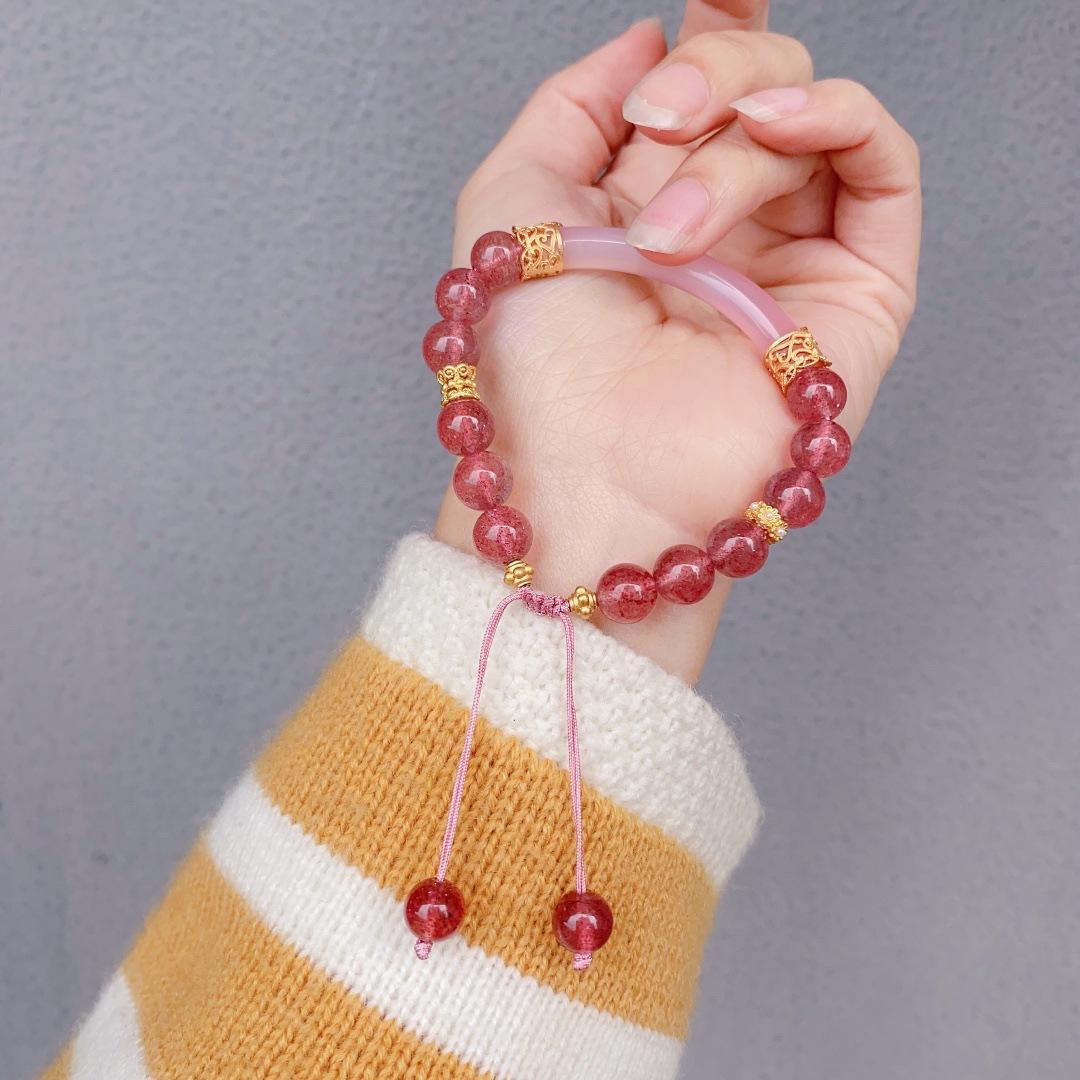 Ónix Rojo del Sur Natural Cristal Fresa Cristal Alashan Cristal Blanco Espinazo Oro Negro Pulsera Media Pulsera Pulsera para Mujer Verano