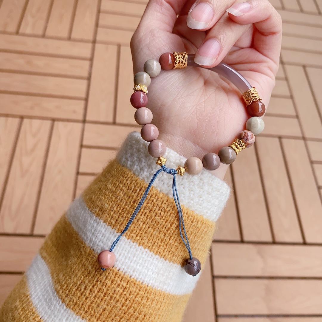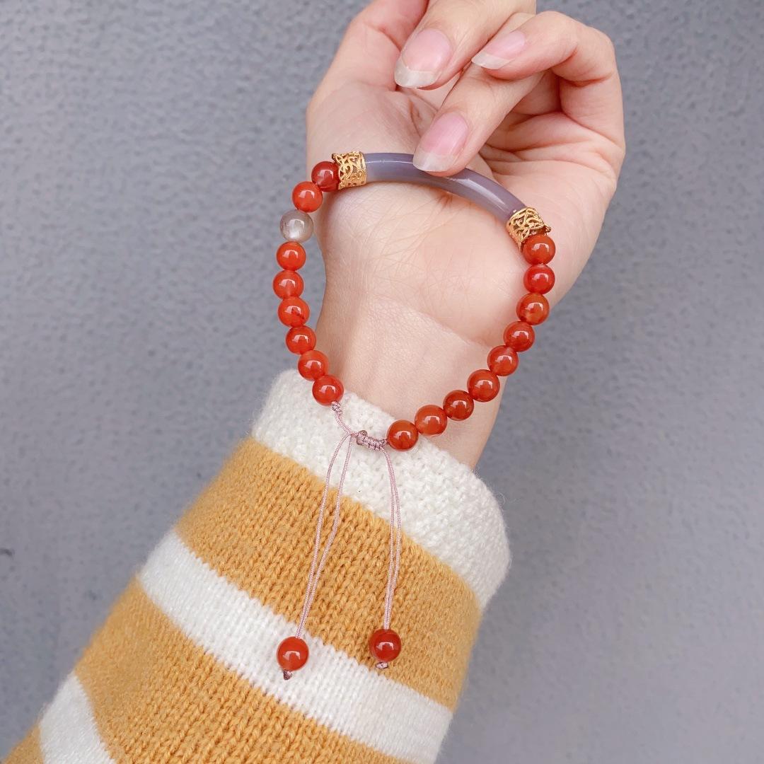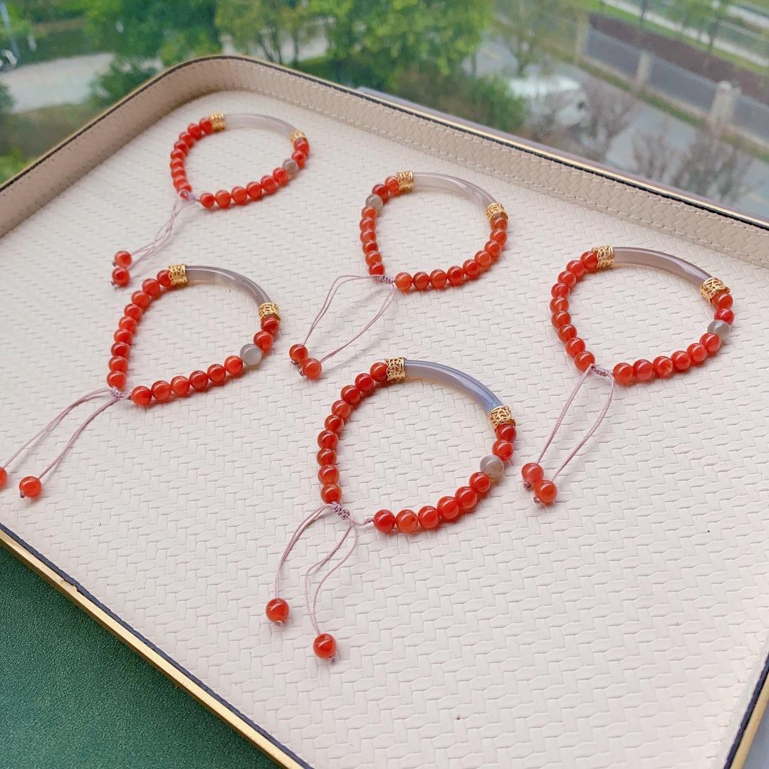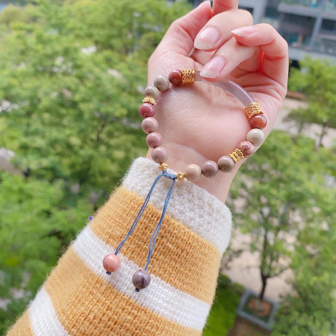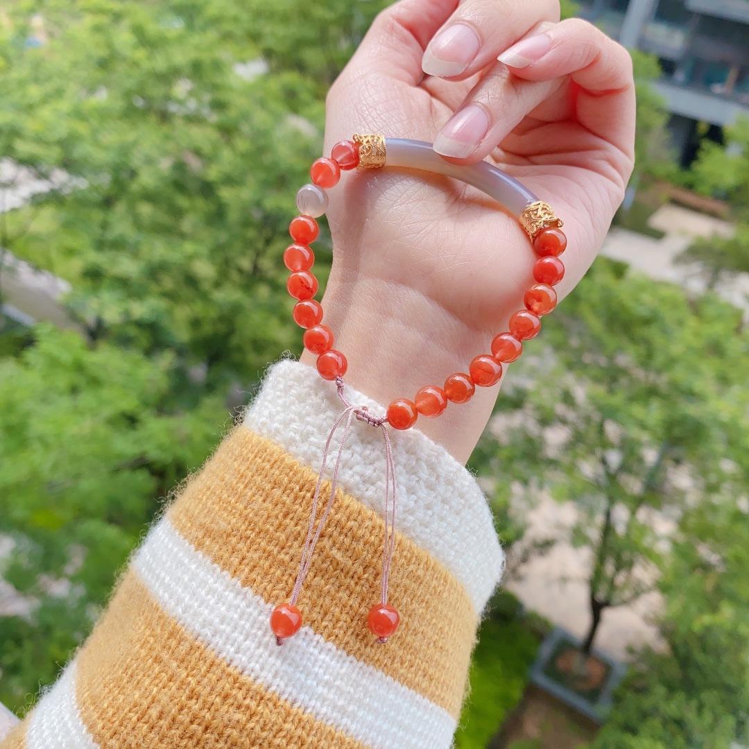 Ónix Rojo del Sur Natural Cristal Fresa Cristal Alashan Cristal Blanco Espinazo Oro Negro Pulsera Media Pulsera Pulsera para Mujer Verano