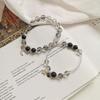 Venta al por mayor de fábrica pulsera de pareja de cristal para cabello negro plata s925 par con letras obsidiana estrella luna pulsera de cristal regalo