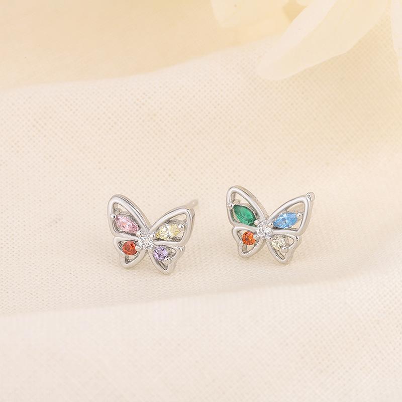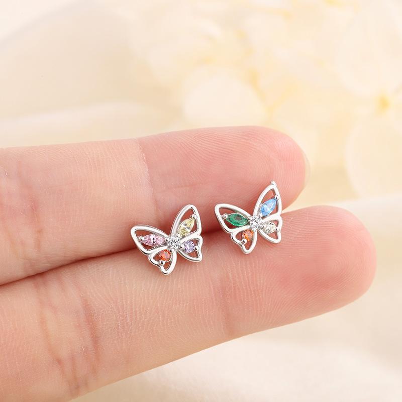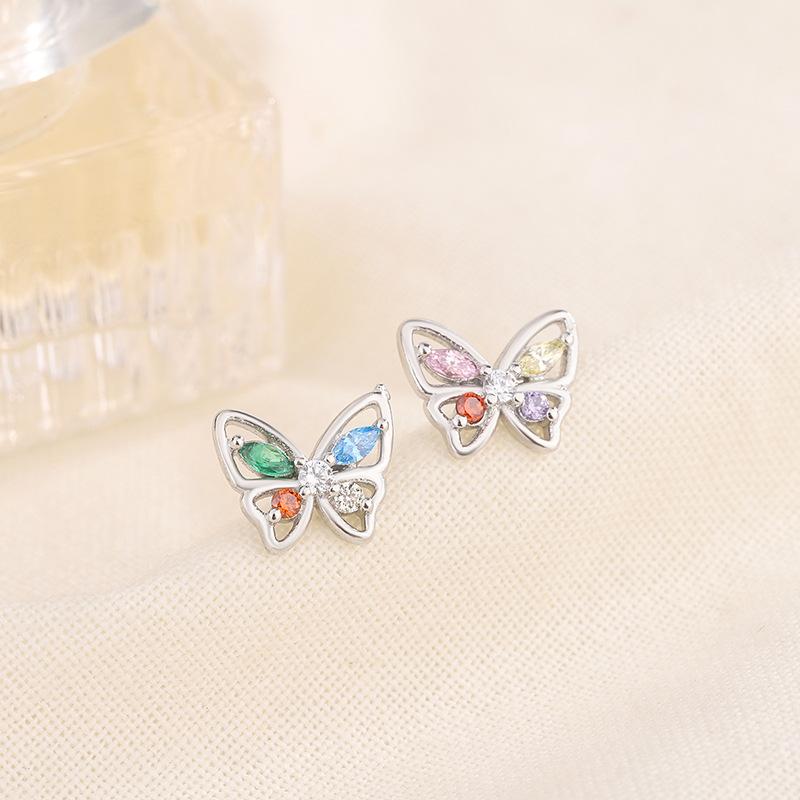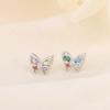 2022 Nuevo Estilo de Verano Perforación de Oreja Pendientes Pequeños Exquisitos Pendientes Pequeños de Mariposa de Zircón Colorido Pendientes de Aguja de Plata S925
