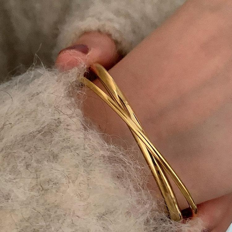 Pulsera cruzada de metal de alta calidad, diseño de nicho femenino, personalidad retro, pulsera de moda de temperamento simple que combina con todo